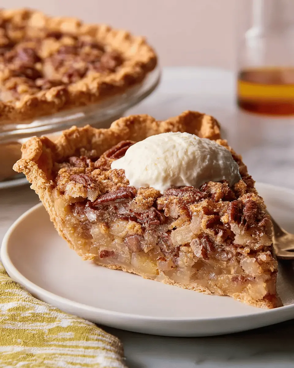 Let the pie cool completely on a wire rack before slicing. This will help to set the filling and make for cleaner slices! Enjoy your delightful apple pecan pie with a scoop of vanilla ice cream or a swirl of whipped cream for the perfect finish!