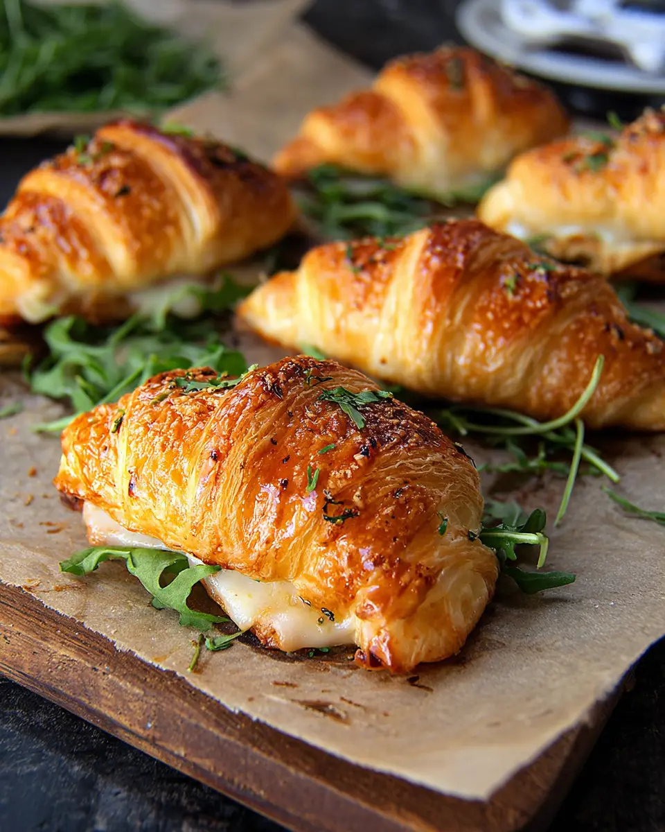- Bake for 5-8 minutes, or until the cheese is melted and the tops of the croissants are golden brown.