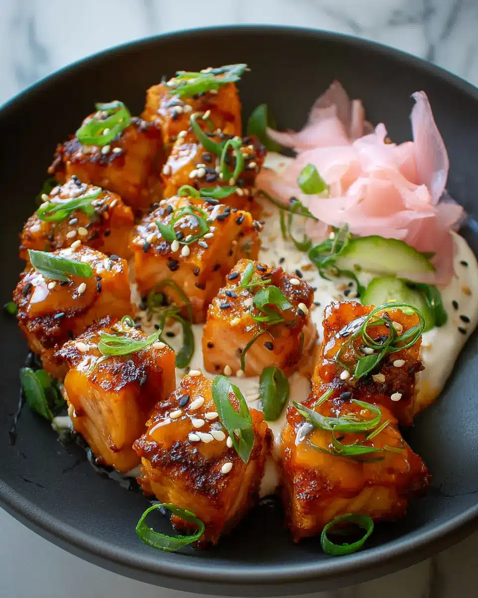 To create a well-rounded meal experience, pair your Bang Bang Salmon Bites with fresh, vibrant sides. Consider serving them alongside garlic sautéed asparagus or a refreshing cucumber salad dressed with sesame oil and rice vinegar. For a heartier option, try fluffy jasmine rice or quinoa topped with herbs. Want a crunch? A small serving of crunchy slaw can add texture and balance!