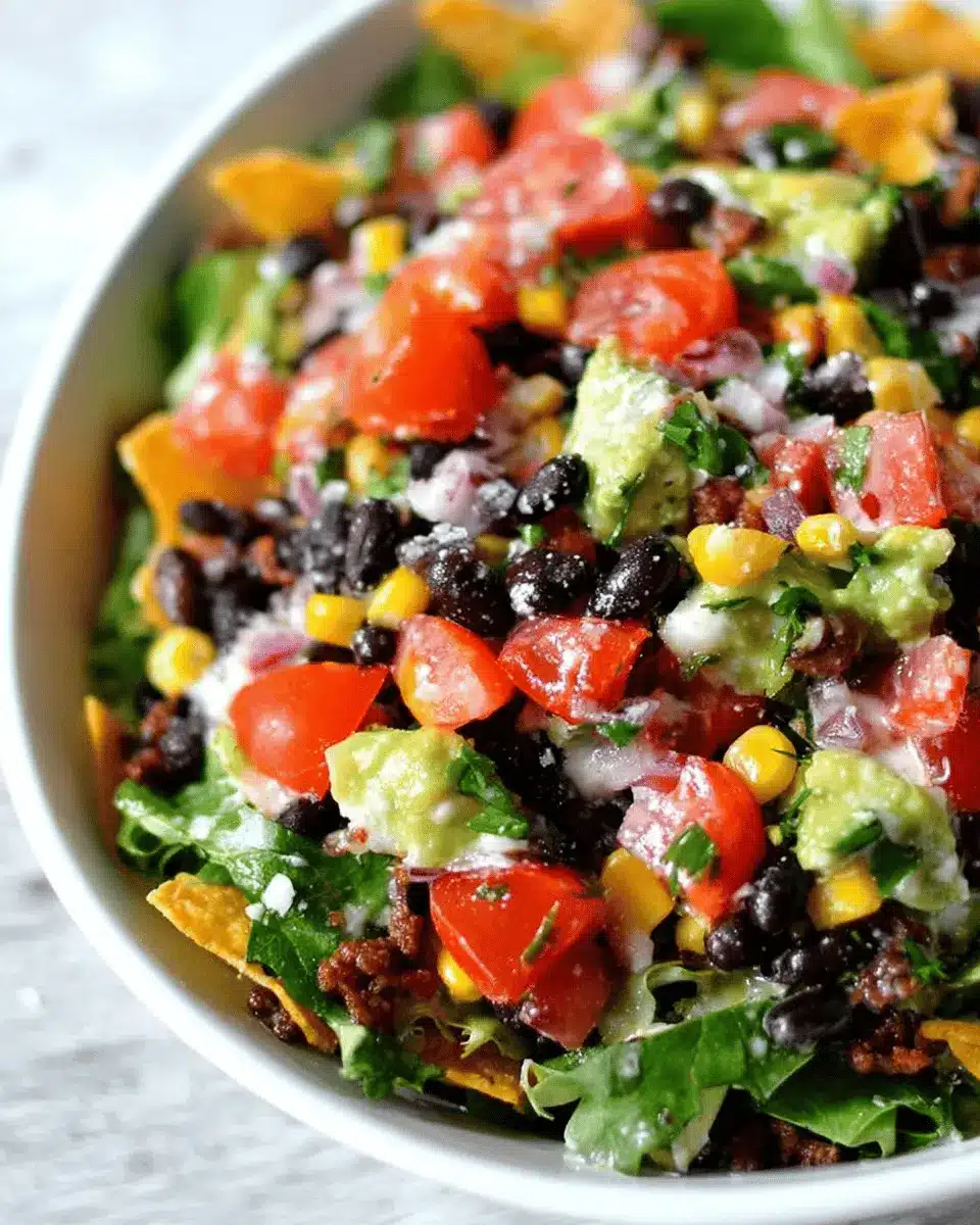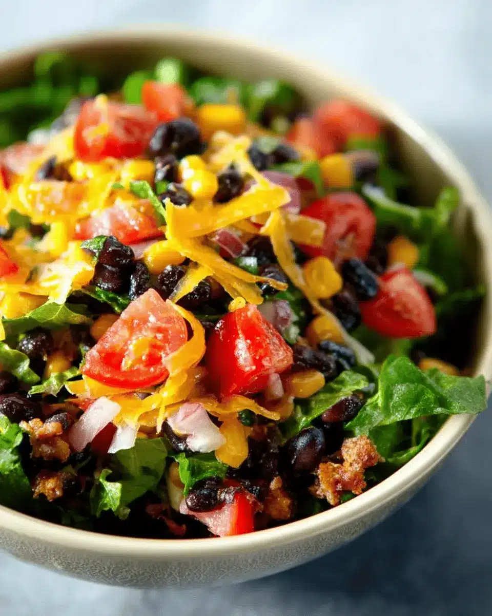 Versatile Ingredients: Feel free to customize your salad to match your taste. Whether you want to add avocado slices or swap in different veggies, the black bean taco salad recipe is an excellent canvas for creativity.