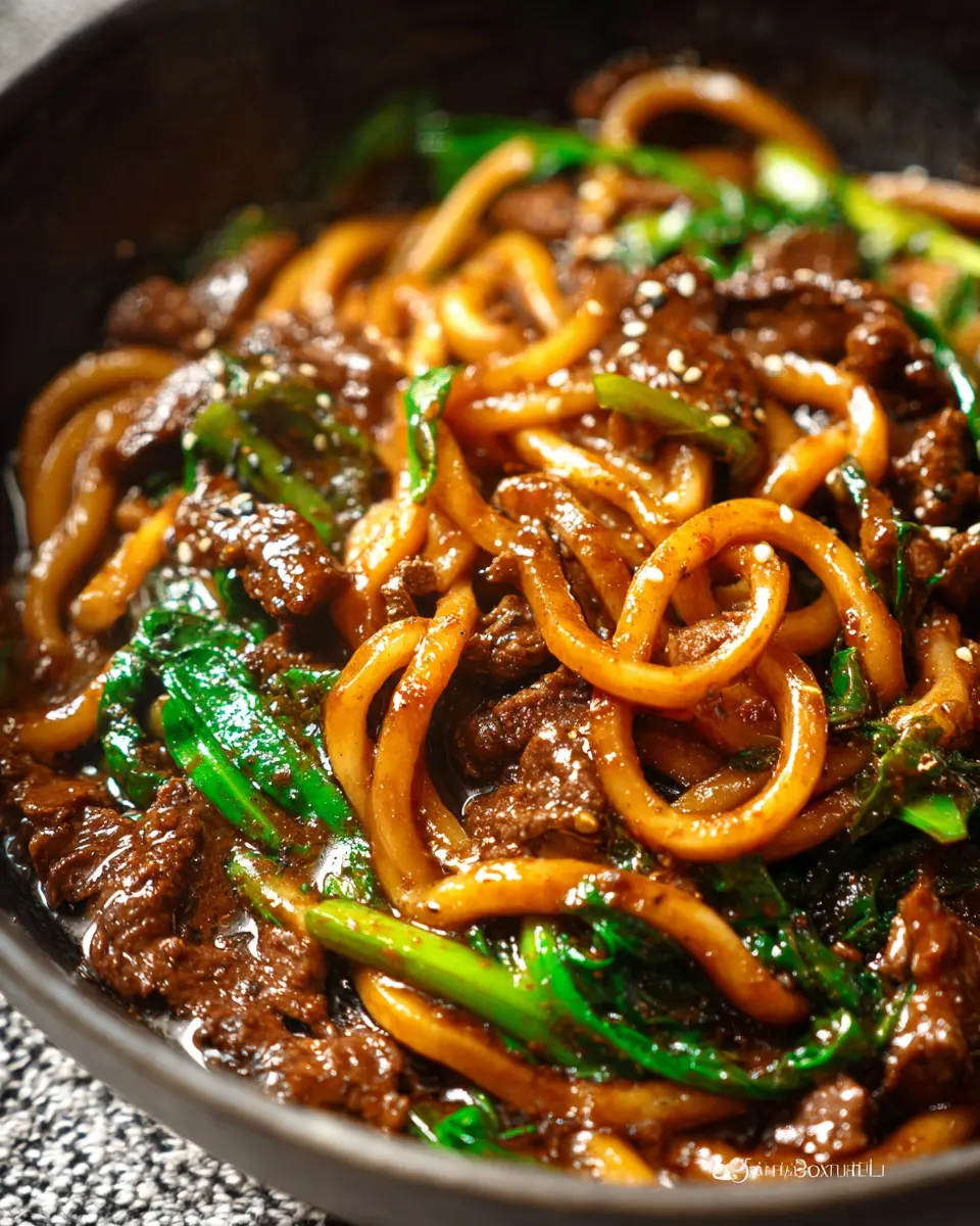 This recipe is not only quick but also flavorful; the combination of black pepper and savory sauces creates a delightful experience that pairs wonderfully with the udon noodles. Enjoy your time in the kitchen, and savor every bite of your black pepper beef udon noodles!