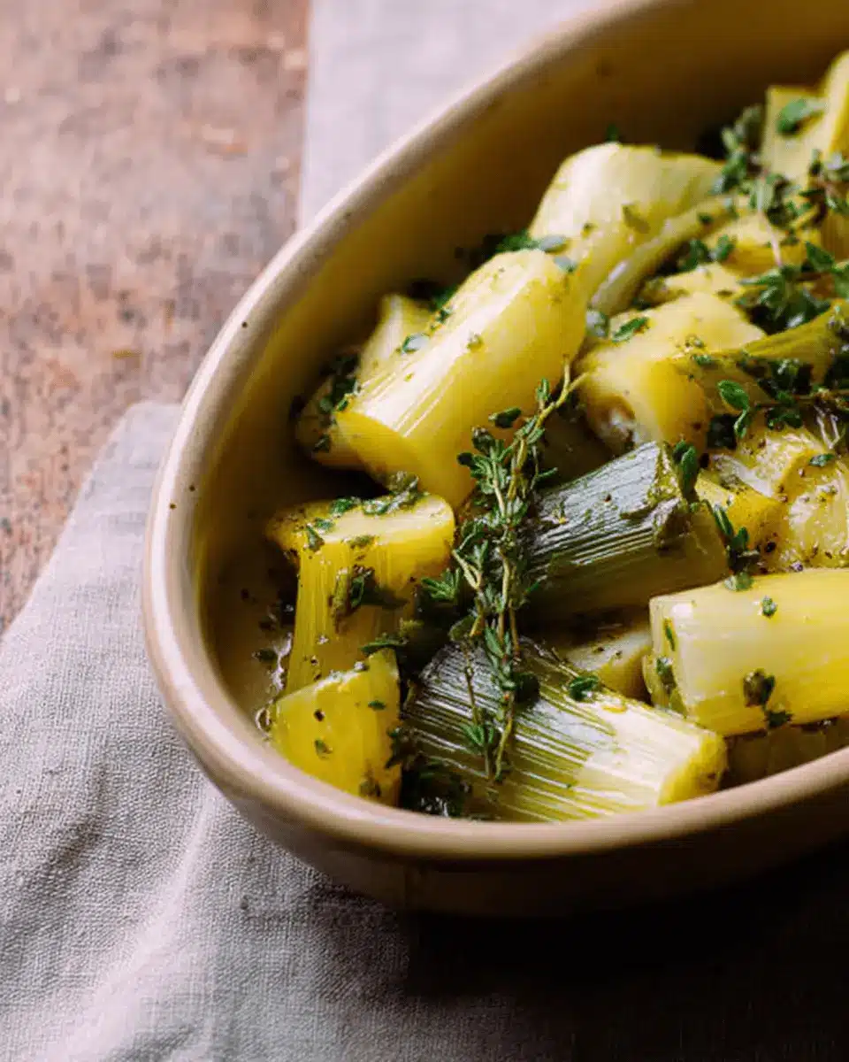 Absolutely! Braised leeks with thyme can be prepared a day ahead and stored in the refrigerator. Just make sure to allow them to cool completely before transferring them to an airtight container. When you’re ready to serve, gently reheat them on the stove over low heat, adding a splash of chicken stock if needed. This way, you’ll save time, and the flavors will deepen overnight!