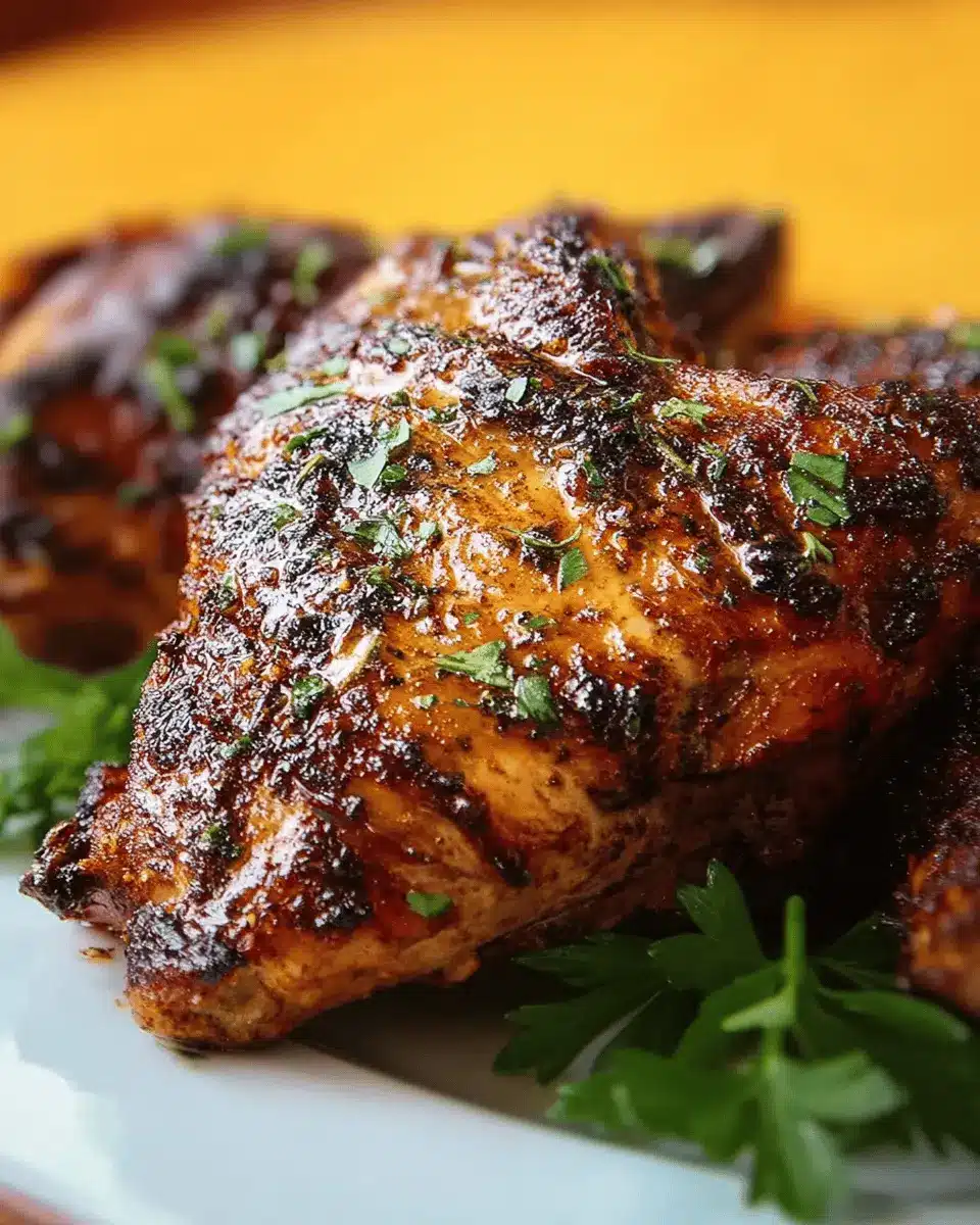 Now comes the exciting part: grilling! Remove the chicken from the marinade and shake off any excess. Discard the remaining marinade to keep things safe and healthy. Place the chicken on the hot grill, cooking for about 6 to 8 minutes per side. The key here is to cook until the juices run clear, and an instant-read thermometer reads at least 165°F (74°C). You’ll be rewarded with beautifully charred, flavorful chicken that is perfect for any meal!