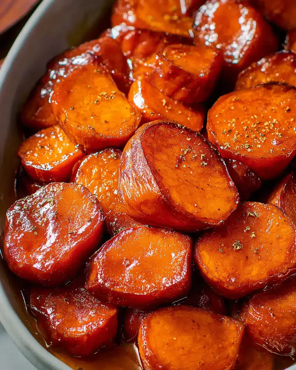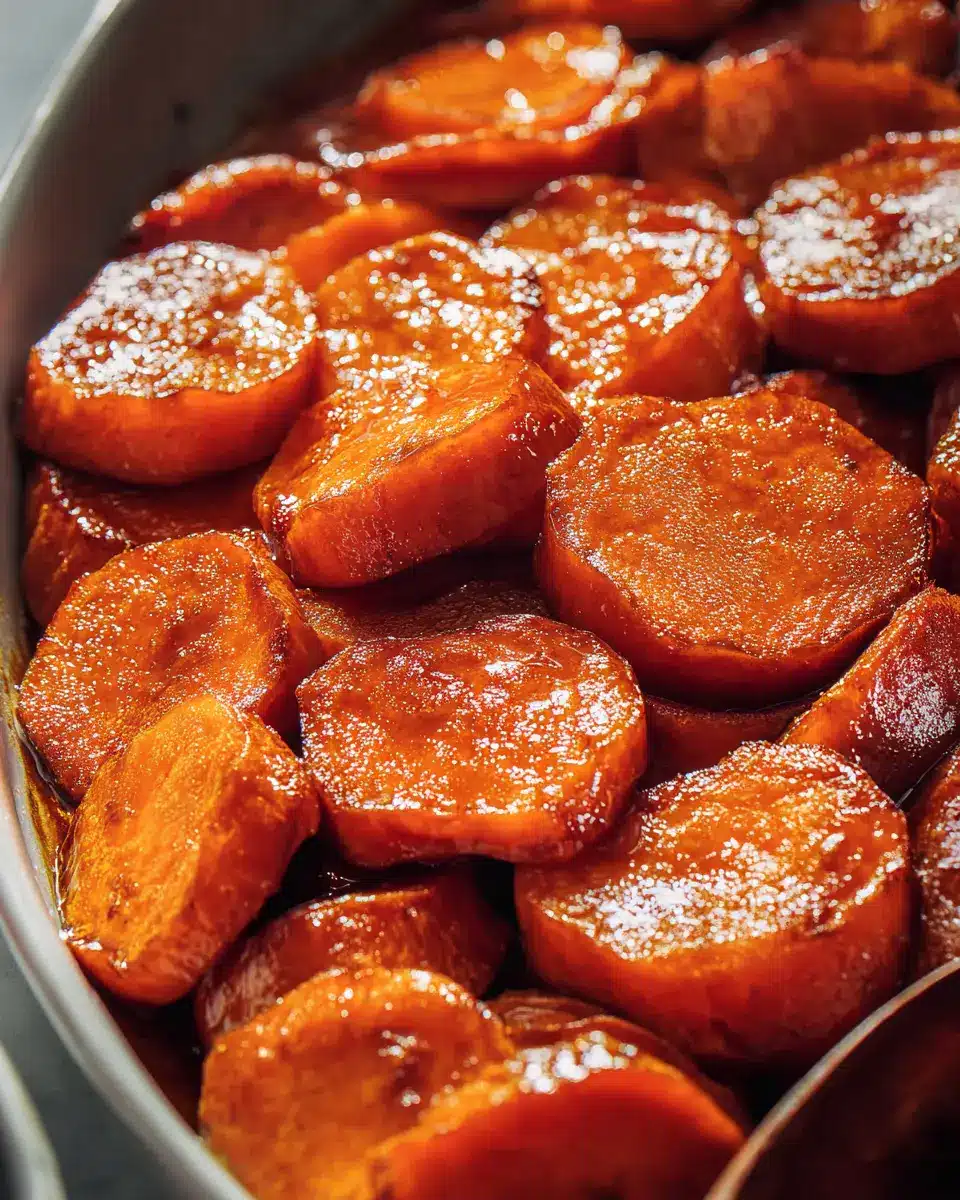 To keep your candied yams fresh, let them cool completely before transferring them to an airtight container. Store them in the refrigerator for up to 3-4 days. If you want to enjoy them later, consider freezing them for up to 3 months—just reheat in the oven for the best texture and flavor.