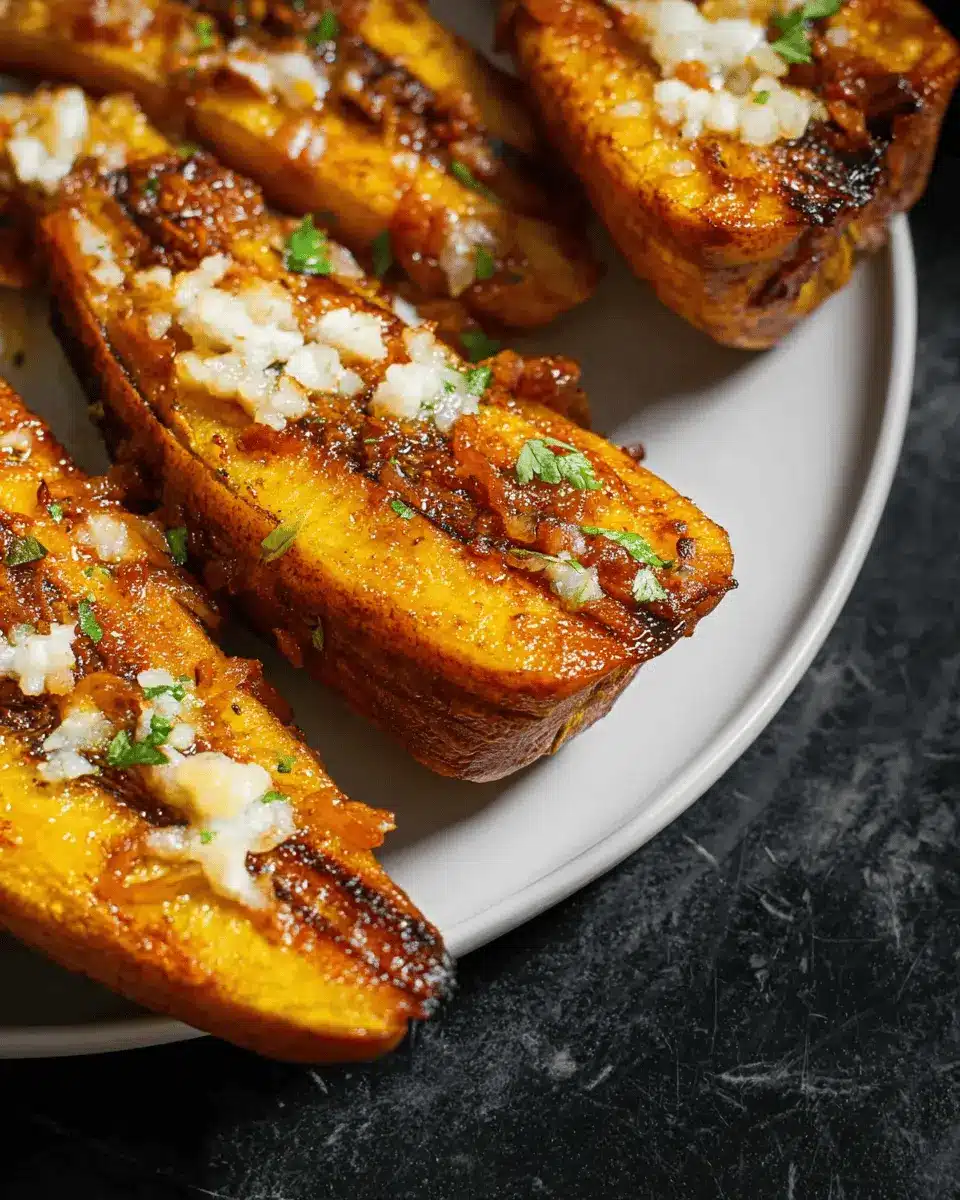 Now for the grand finale! Place the stuffed plantains under the broiler for a couple of minutes, just until the cheese starts to bubble and turn golden brown. Keep a watchful eye—broilers can be sneaky! Once they’re gloriously browned, take them out, sprinkle with fresh cilantro, and they’re ready to serve!