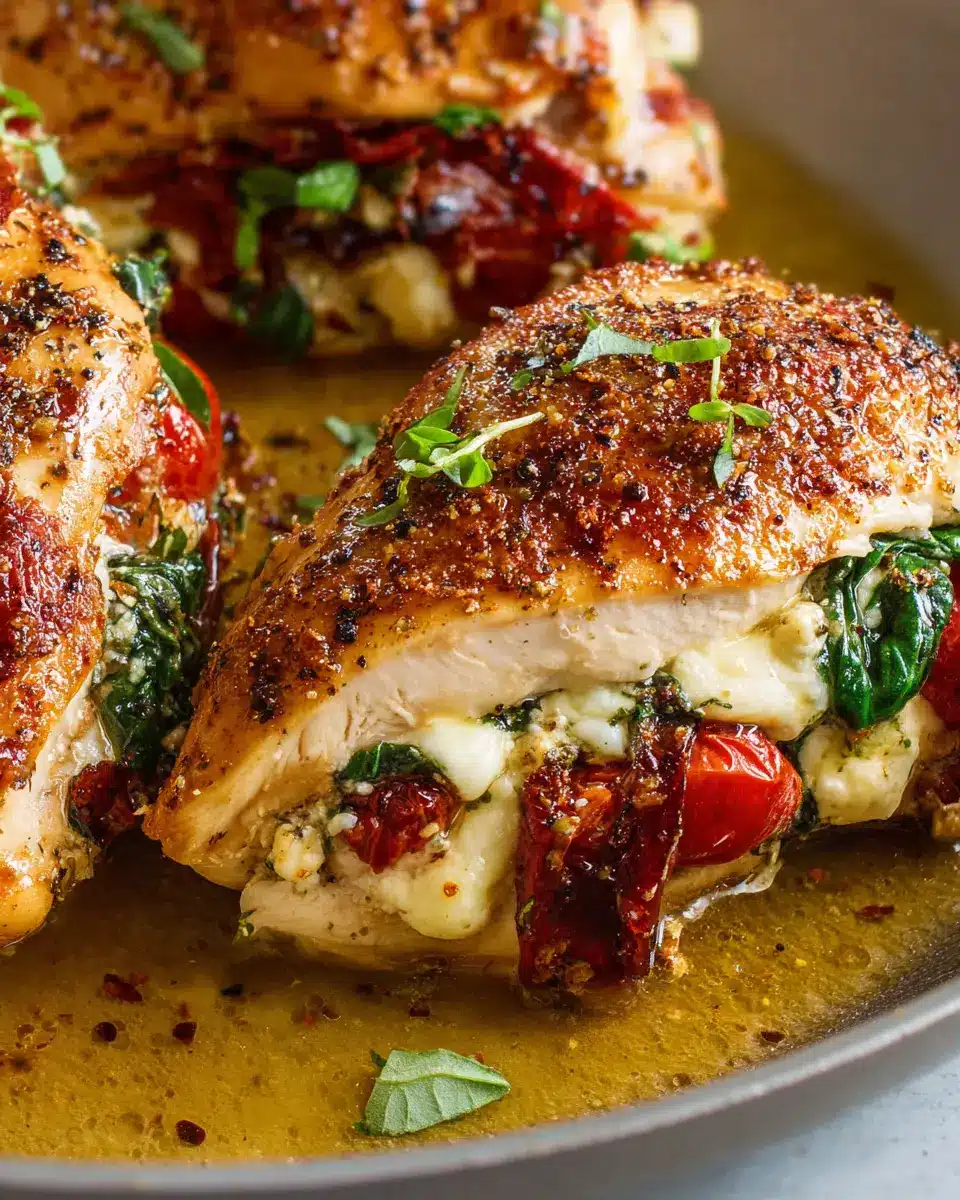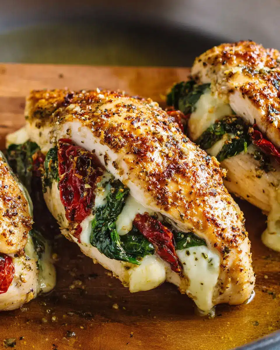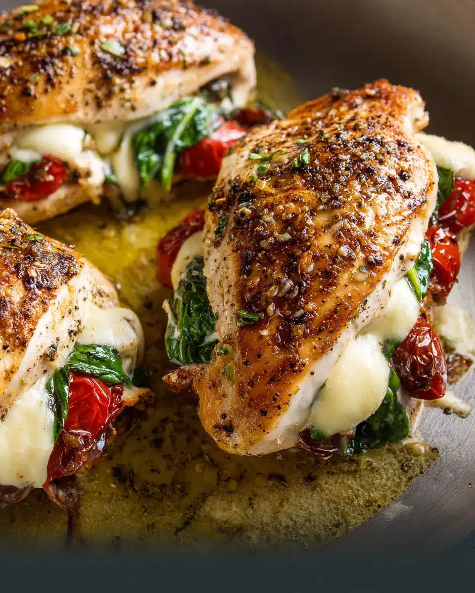 Imagine a dish that perfectly marries the flavors of a traditional Caprese salad with the heartiness of chicken. That's precisely what Caprese-Stuffed Chicken delivers! This delectable recipe features succulent chicken breasts filled with fresh baby spinach, rich sun-dried tomatoes, and creamy mozzarella cheese. The juxtaposition of tastes and textures not only makes for a visually stunning plate but also a satisfying meal that hits all the right notes.