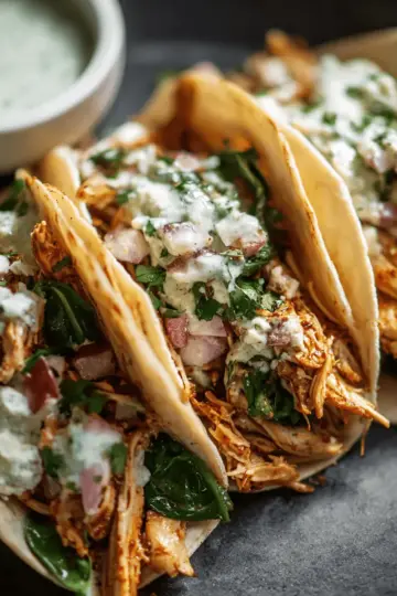 Shredded Chicken Tacos with Creamy Chimichurri Sauce