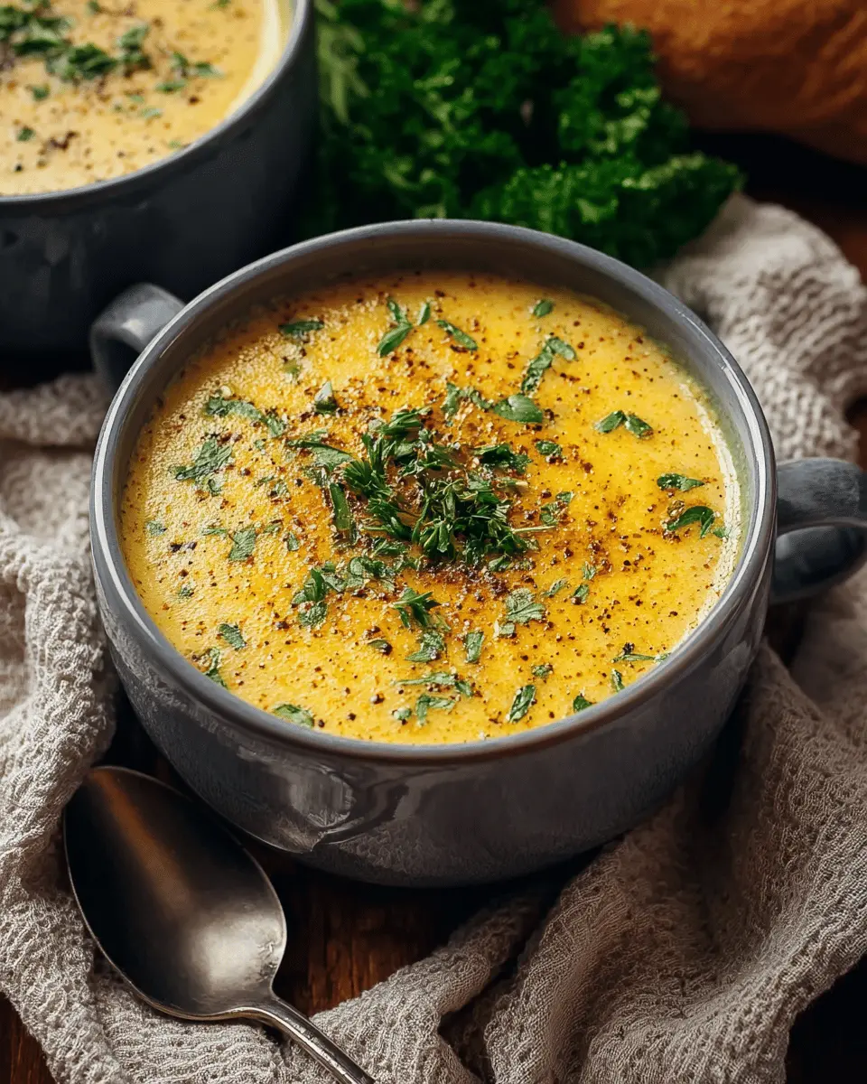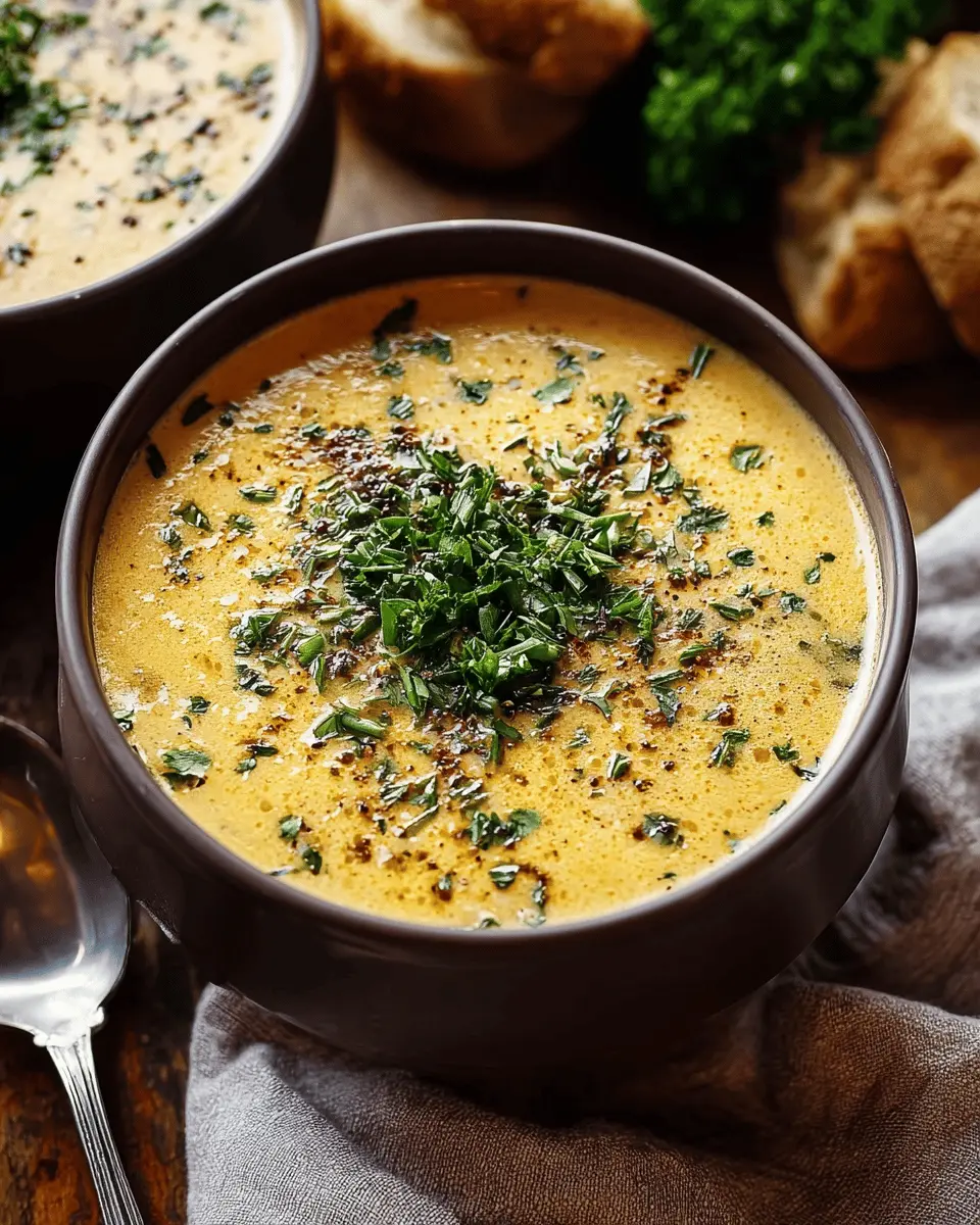 This soup pairs wonderfully with crusty bread—perfect for dipping and soaking up every last drop! Don't forget to garnish with fresh parsley or green onions to add a pop of color.