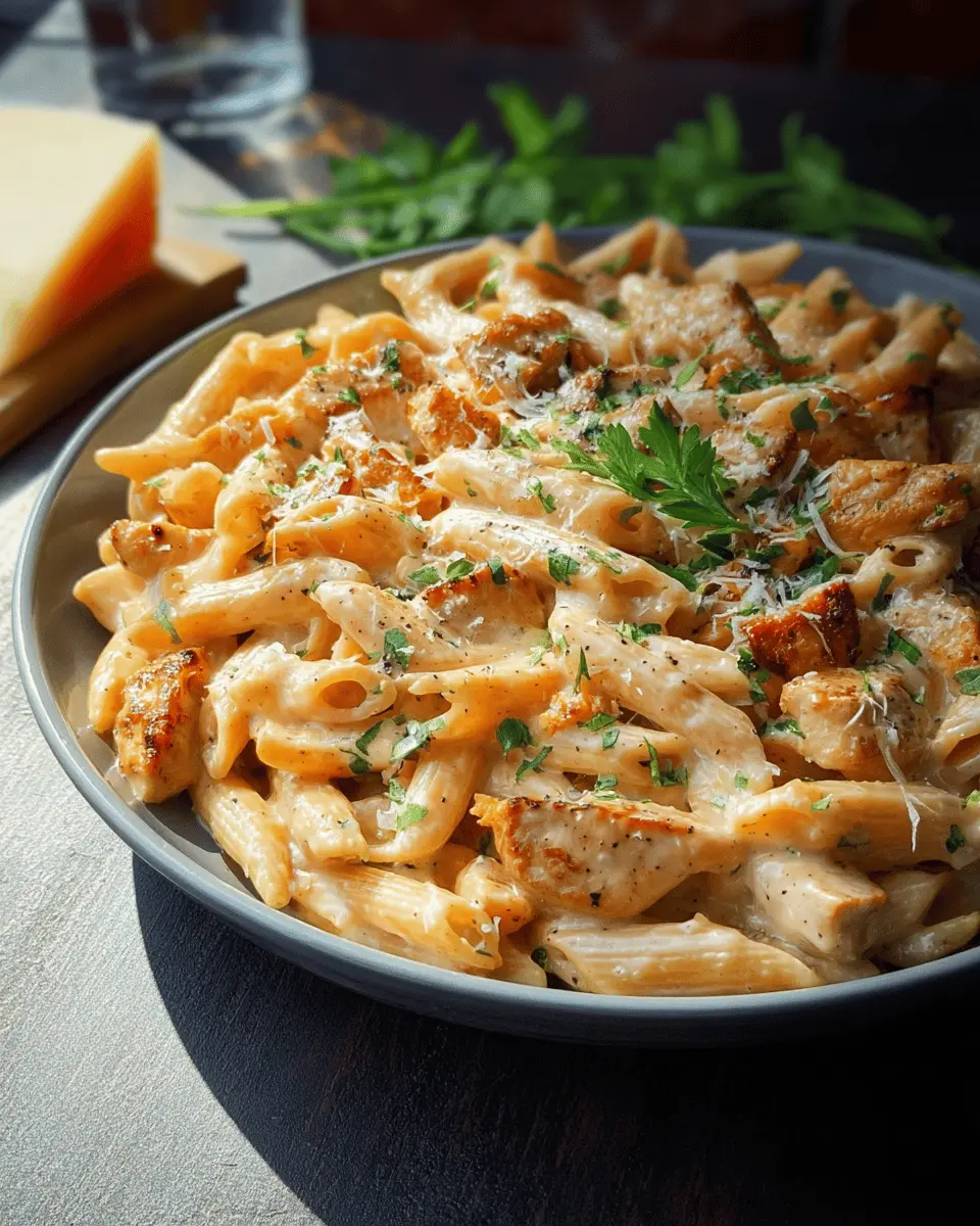 Imagine creamy, cheesy goodness enveloping tender chicken and perfectly cooked penne—a combination that not only fills your belly but also warms the heart. The best part? You can make it with ingredients you likely already have in your pantry.
