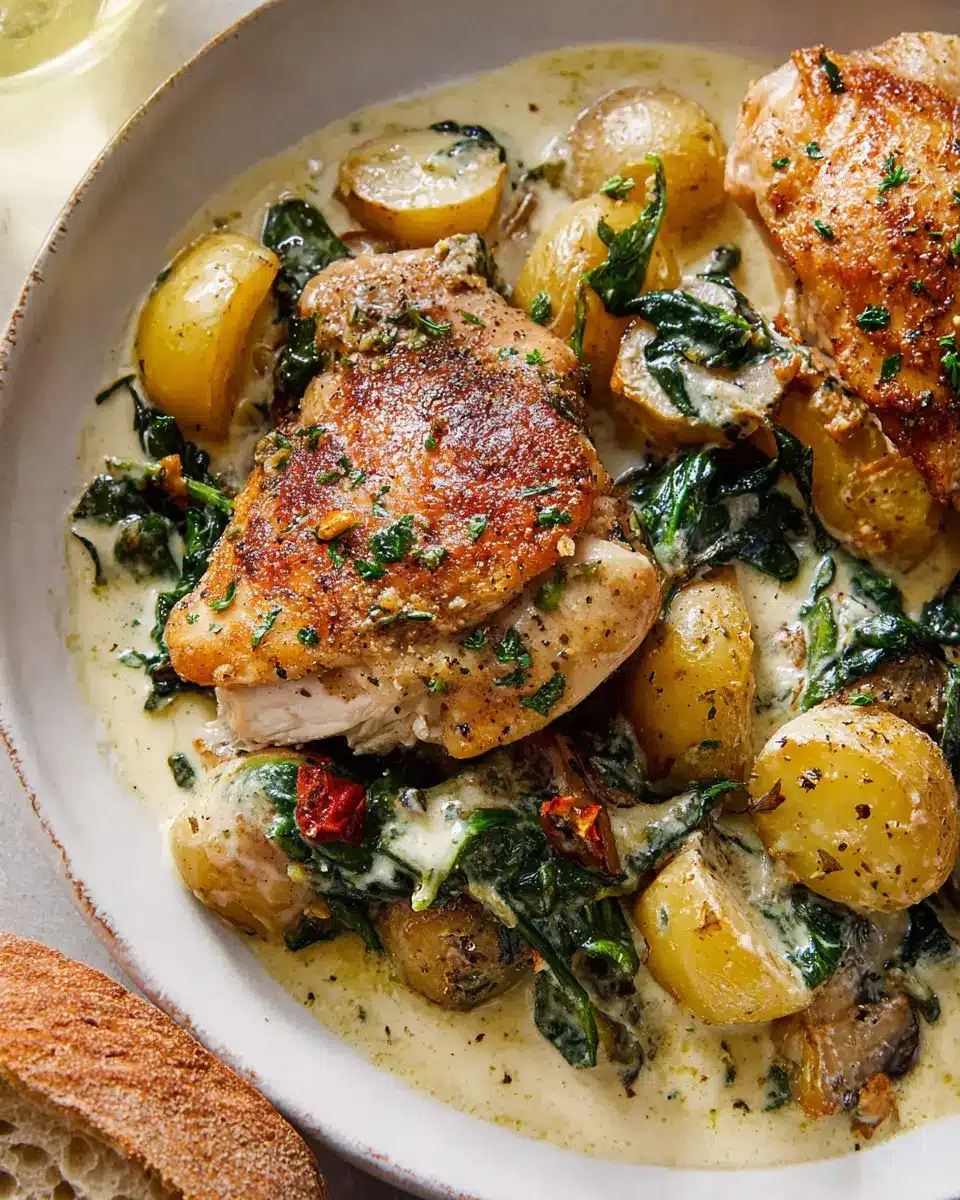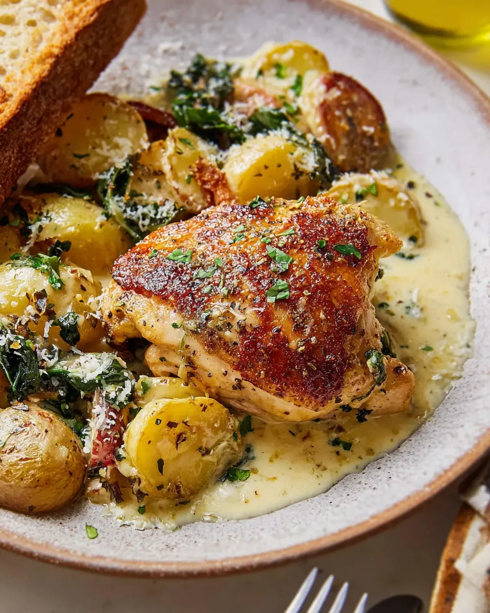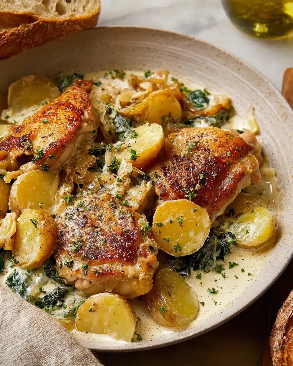 In conclusion, Chicken and Potatoes with Garlic Parmesan Cream Sauce is perfect for a cozy weeknight dinner or impressing guests. The tender chicken paired with creamy potatoes and vibrant spinach creates a satisfying dish bursting with flavor. Serve with a fresh side salad for a complete meal!