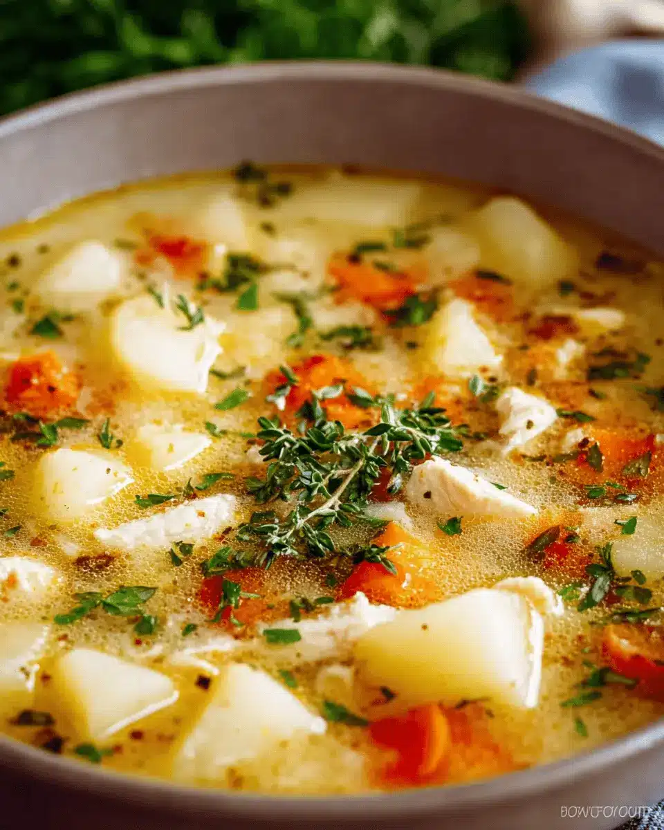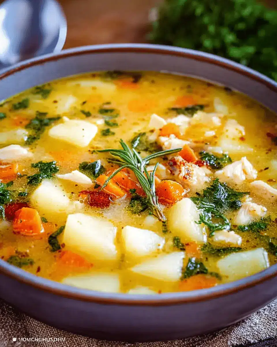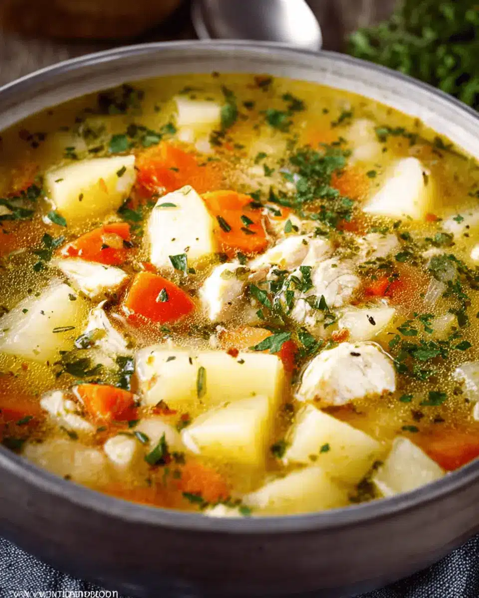With around 8 grams of protein and 3 grams of fiber per serving, this soup offers a satisfying mix that keeps you feeling full. The protein from chicken supports muscle health, while the fiber from potatoes aids digestion.