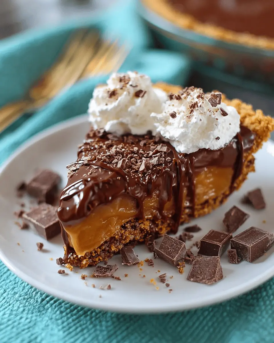 Whether you're celebrating a special occasion or simply looking to satisfy a sweet tooth, this pie is a showstopper. The combination of rich chocolate and warm caramel creates a decadent experience that’s hard to match. So, grab your apron and get ready to create a dessert sure to delight your taste buds and those of anyone fortunate enough to share in your creation!