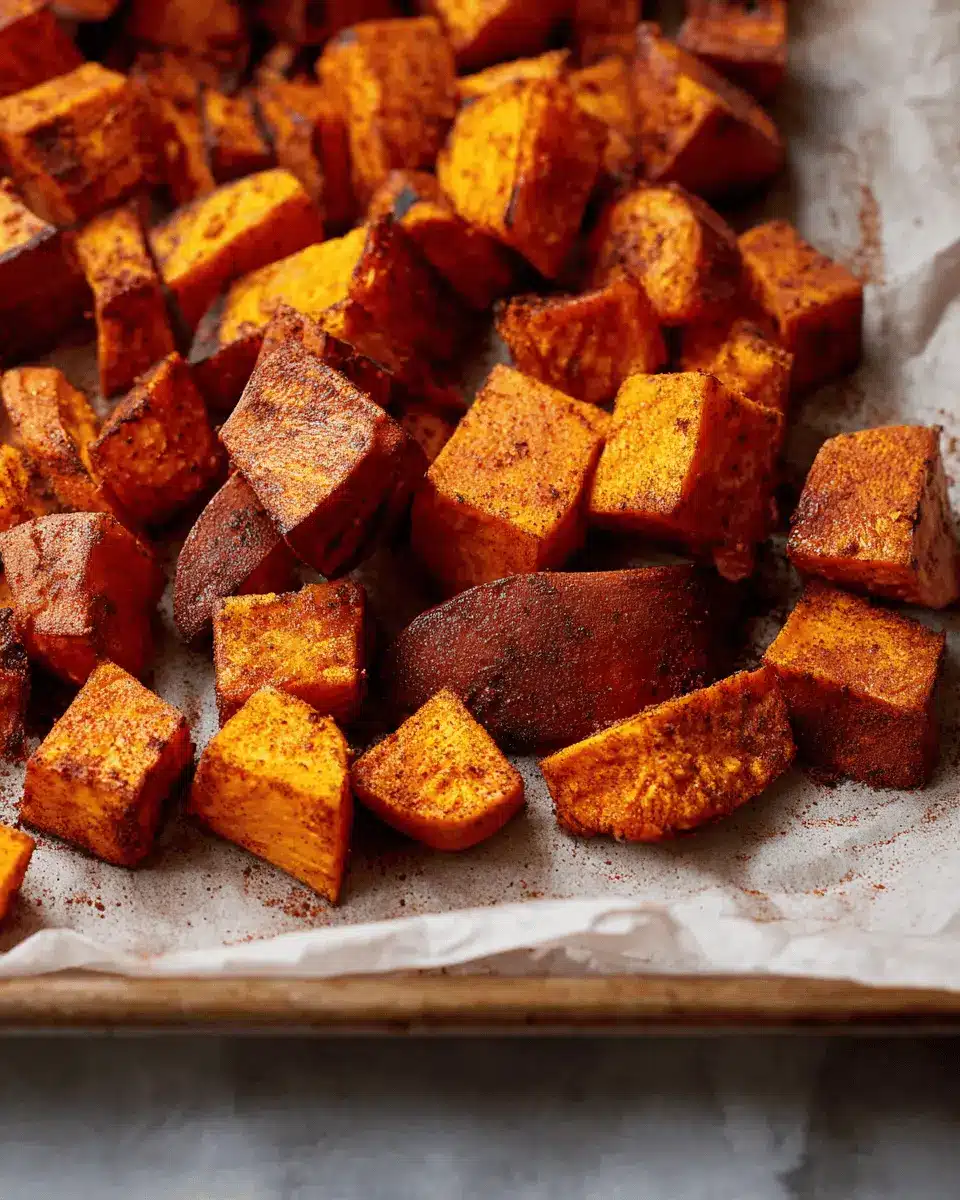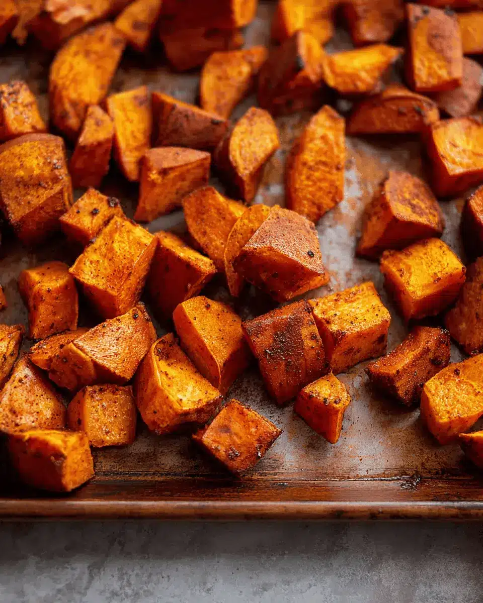 To achieve perfectly roasted sweet potatoes, cut them into uniform 1-inch cubes. This ensures they cook evenly. Don’t forget to toss the cubes well with your oil and seasonings to coat every piece. For even better results, flip them halfway through the roasting time to promote caramelization and crisp edges—this makes all the difference!