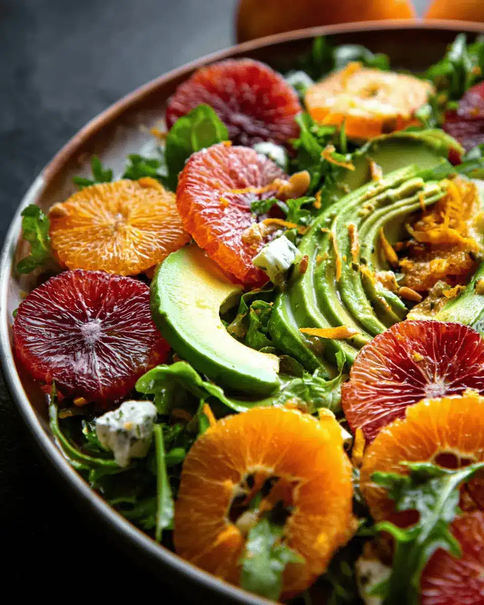Absolutely! You can prepare the citrus avocado salad ingredients ahead of time. Just keep the oranges, avocados, and vinaigrette separate to maintain freshness. Store the mixed greens and arugula in an airtight container in the fridge for up to two days. For the best flavor, drizzle the vinaigrette just before serving to prevent sogginess.