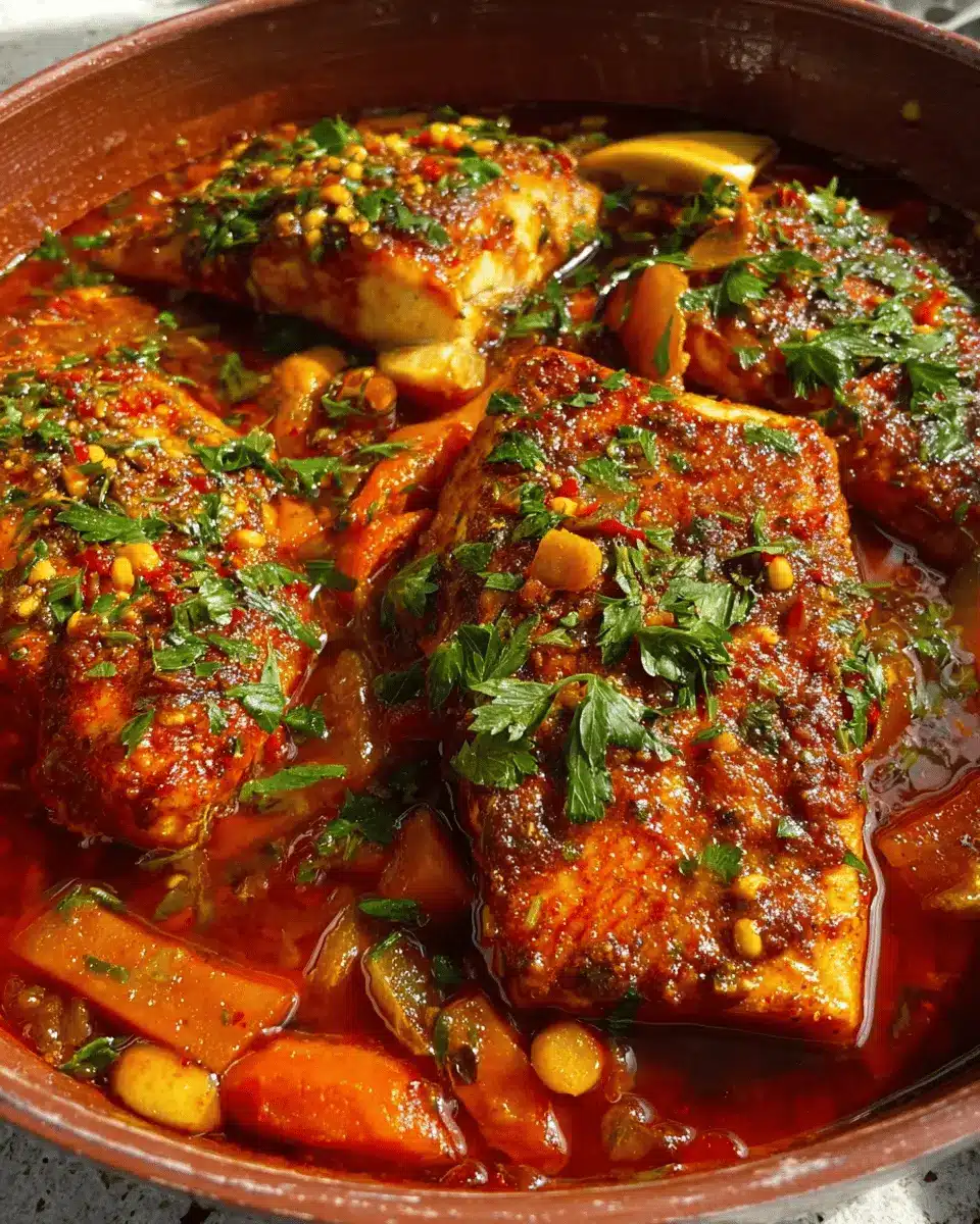 Craving a vegetarian option? Transform this classic dish into a delightful plant-based meal! Use tofu or tempeh as your protein, soaking it in a blend of spices for added flavor. You can also replace the fish with chickpeas or cauliflower, both of which soak up the rich Moroccan sauce beautifully. Check out your local markets for seasonal veggies like zucchini or eggplant for a fresh twist. These alternatives ensure everyone can enjoy the vibrant, spicy essence of Moroccan cuisine!