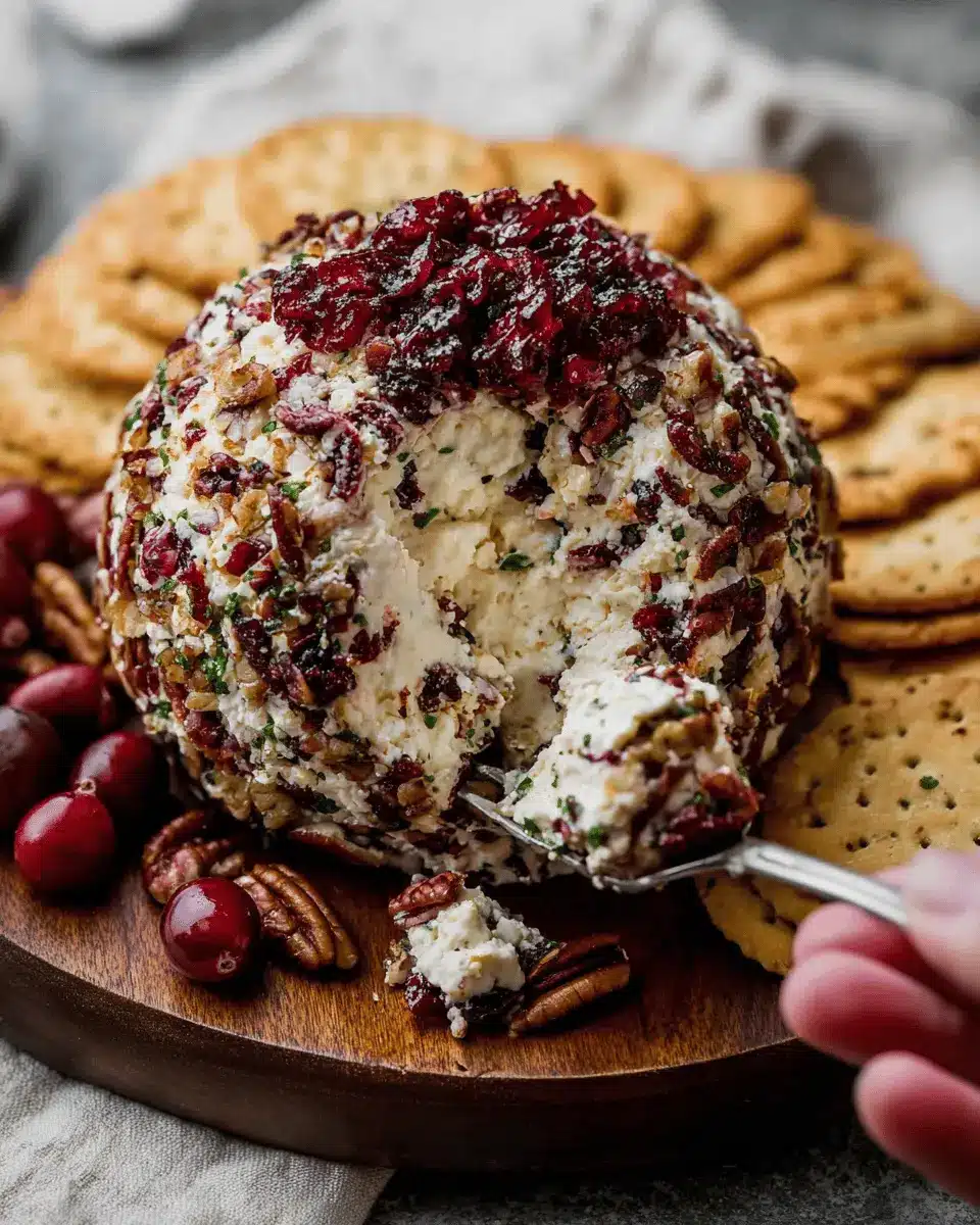 When it comes to pairing your cheese ball, think about a mix of textures! Try using buttery water crackers, whole grain crackers, or even crunchy bagel chips. These options provide a great balance and elevate the enjoyment of this appetizer. For a bit of sweetness, graham crackers can also complement the cranberries beautifully!