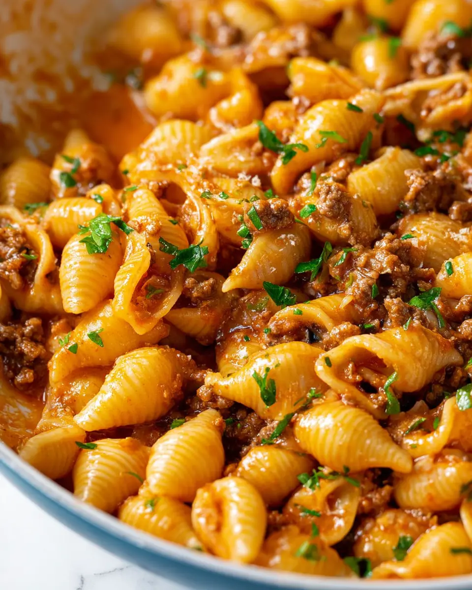 Once you’re prepped and ready to go, the actual cooking will take about 25 minutes. This includes browning your ground beef, creating that creamy tomato sauce, and ensuring your shell pasta is perfectly al dente. Easy peasy!