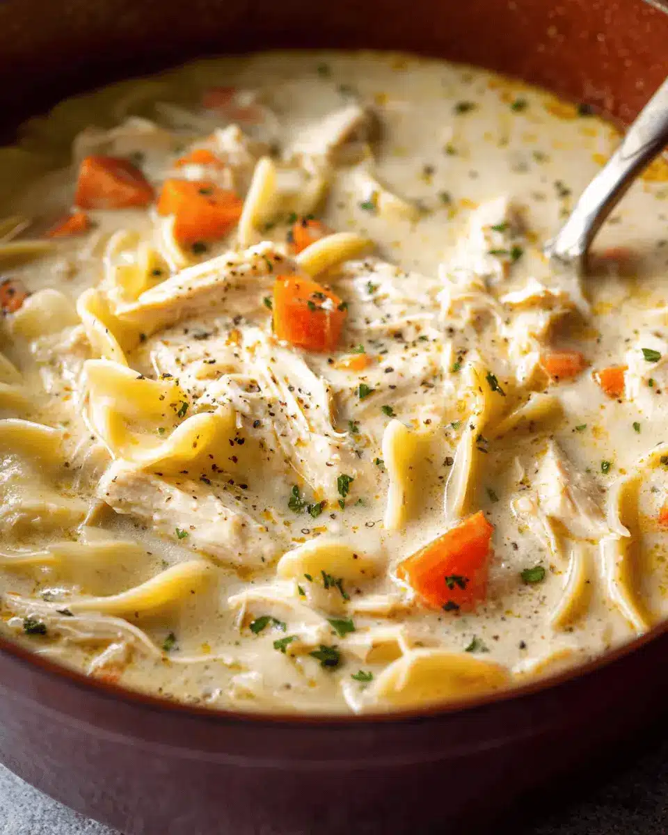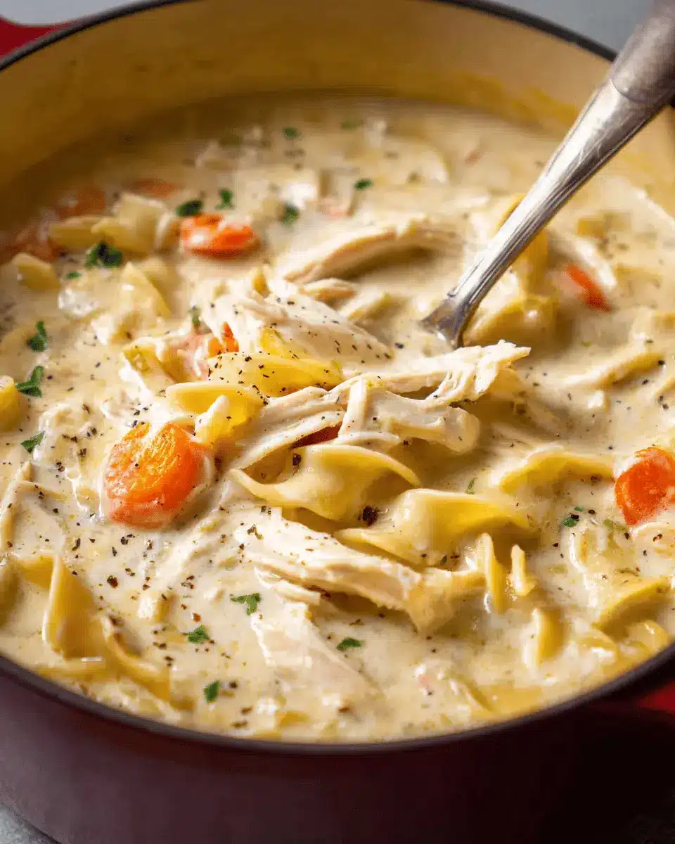 And there you have it — a hearty, creamy chicken noodle soup that’s perfect for cozy nights in or sharing with friends. Enjoy every spoonful!