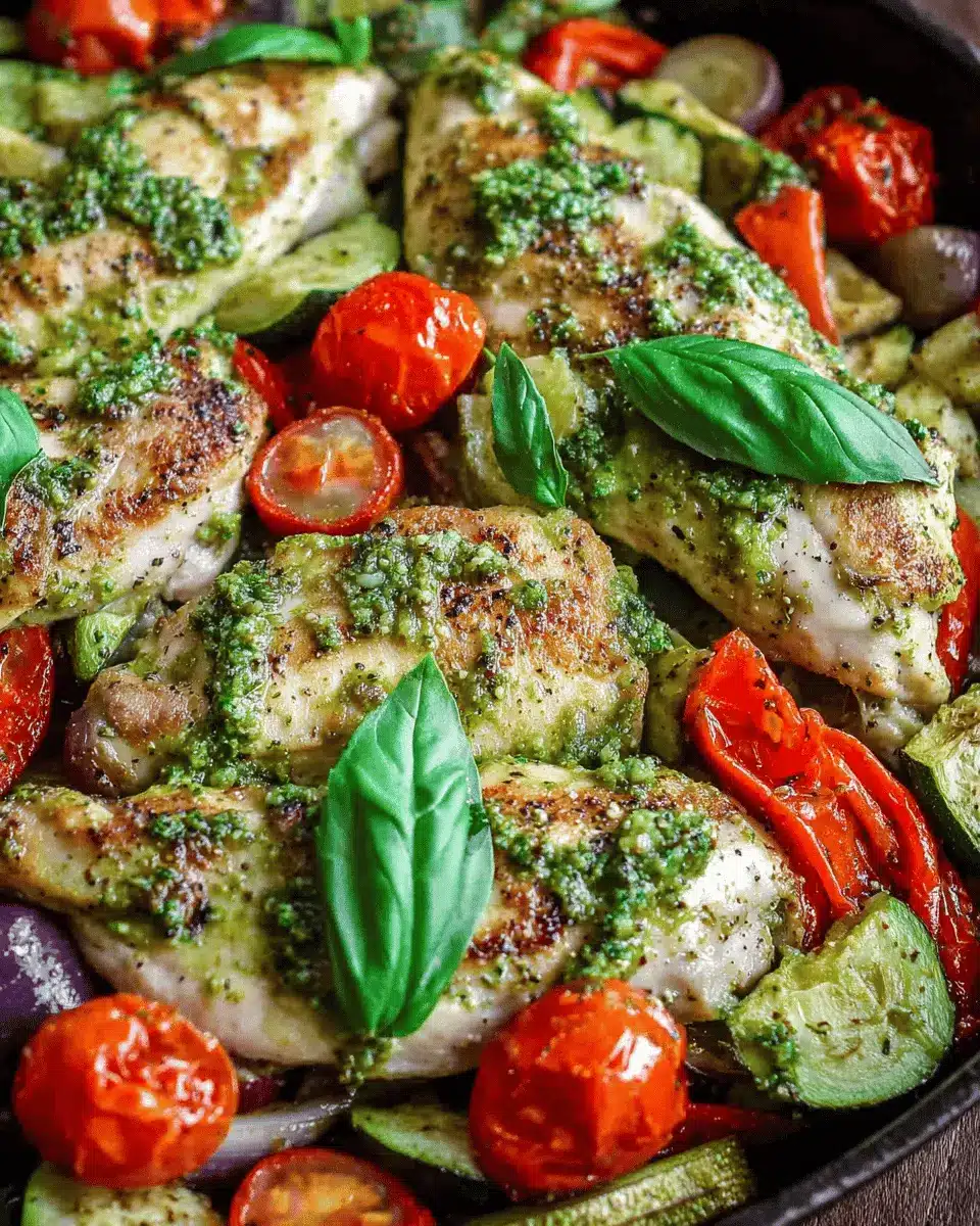 - On a Platter: Arrange the chicken and vegetables on a large platter for communal dining, drizzling with extra pesto for flair.