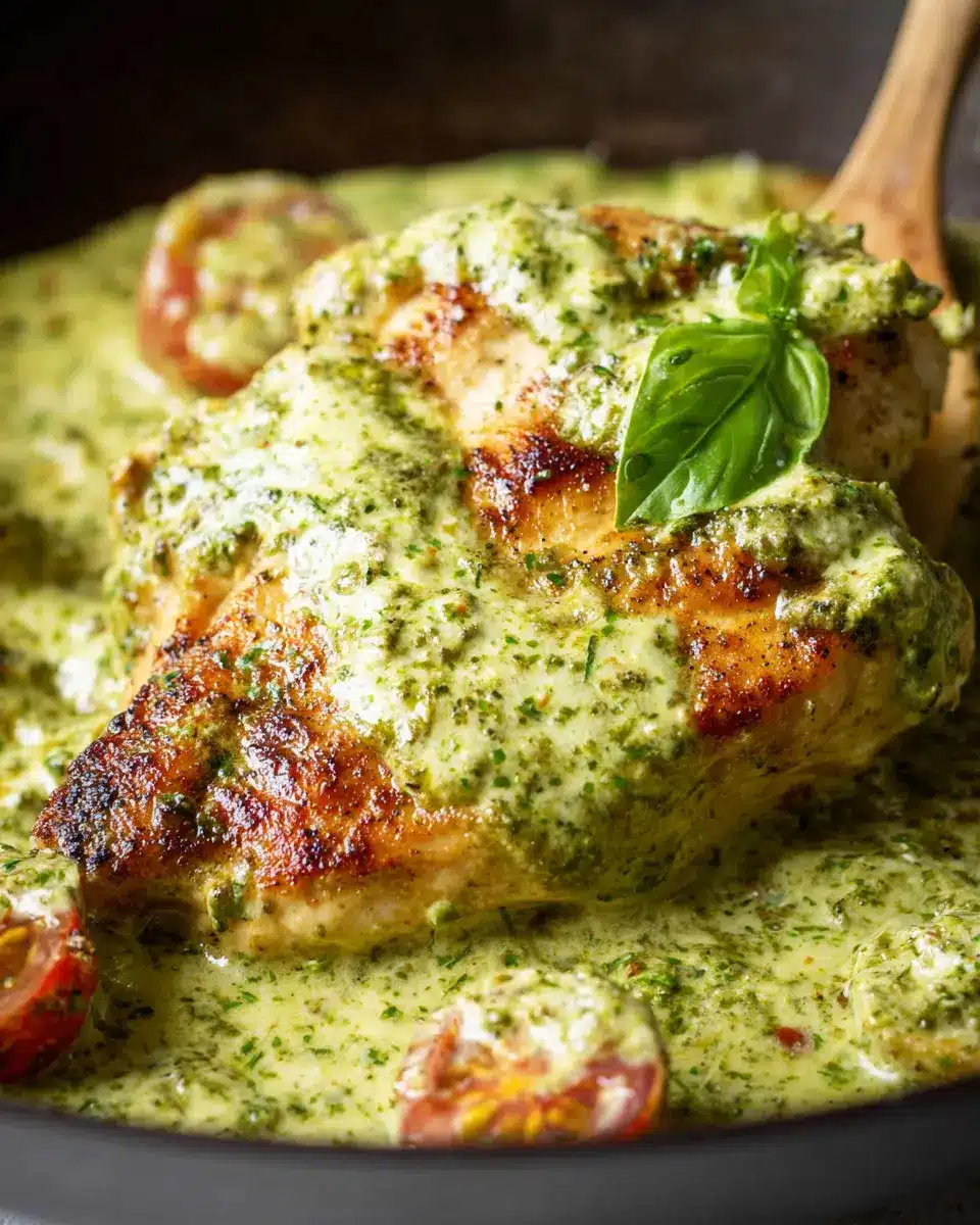For those on a gluten-free diet, you can easily adapt this creamy pesto chicken by substituting plain flour with a gluten-free alternative, like almond flour or a dedicated gluten-free flour blend. The delicious flavor will remain, ensuring you can enjoy this dish without worry. Plus, it pairs perfectly with zucchini noodles or quinoa for a nutritious alternative!