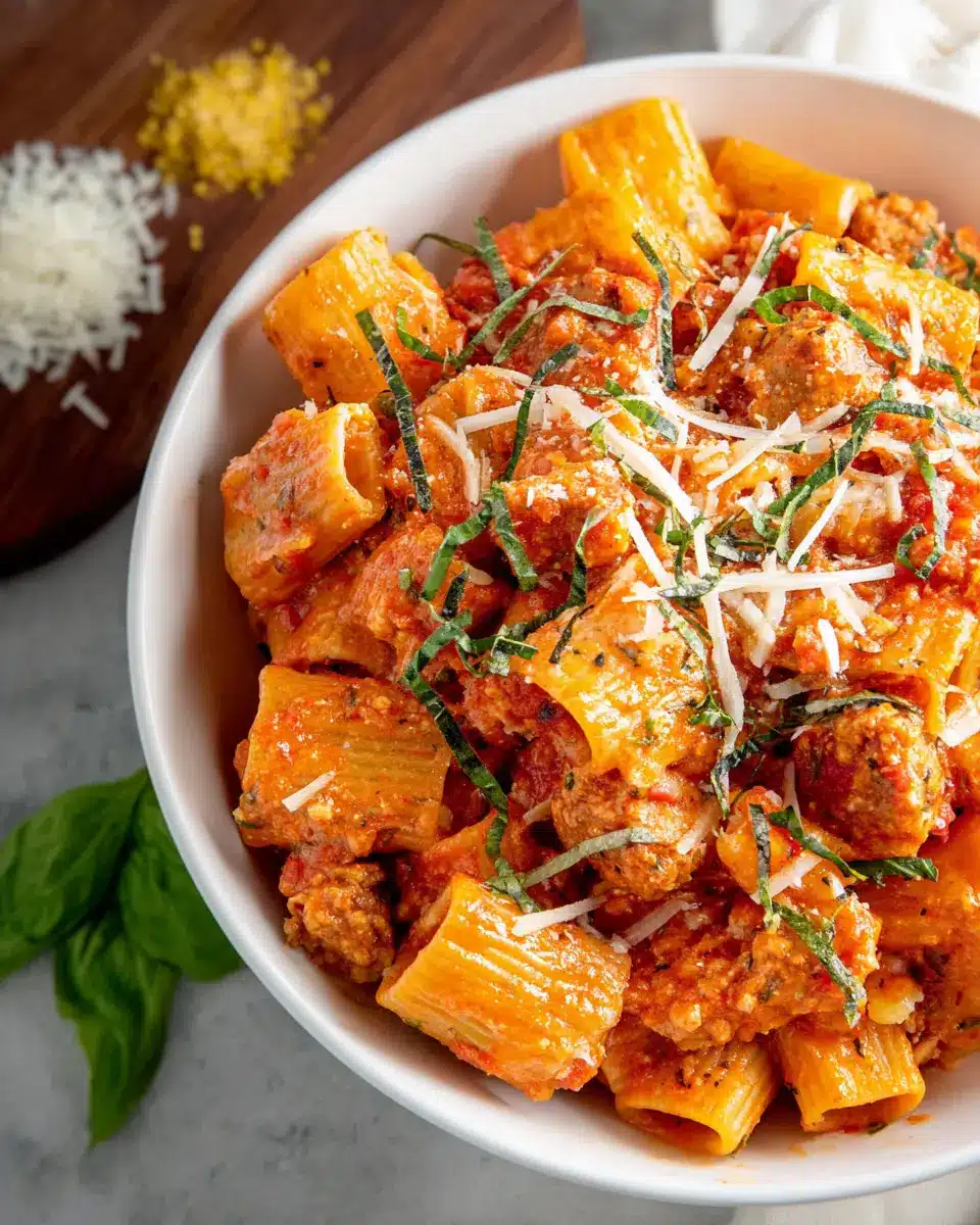 Absolutely! While rigatoni is a fantastic choice for this creamy tomato sausage rigatoni, you can easily swap it for other pasta types like penne, fusilli, or even whole wheat pasta. Each will bring a unique texture, so choose one that suits your preferences.