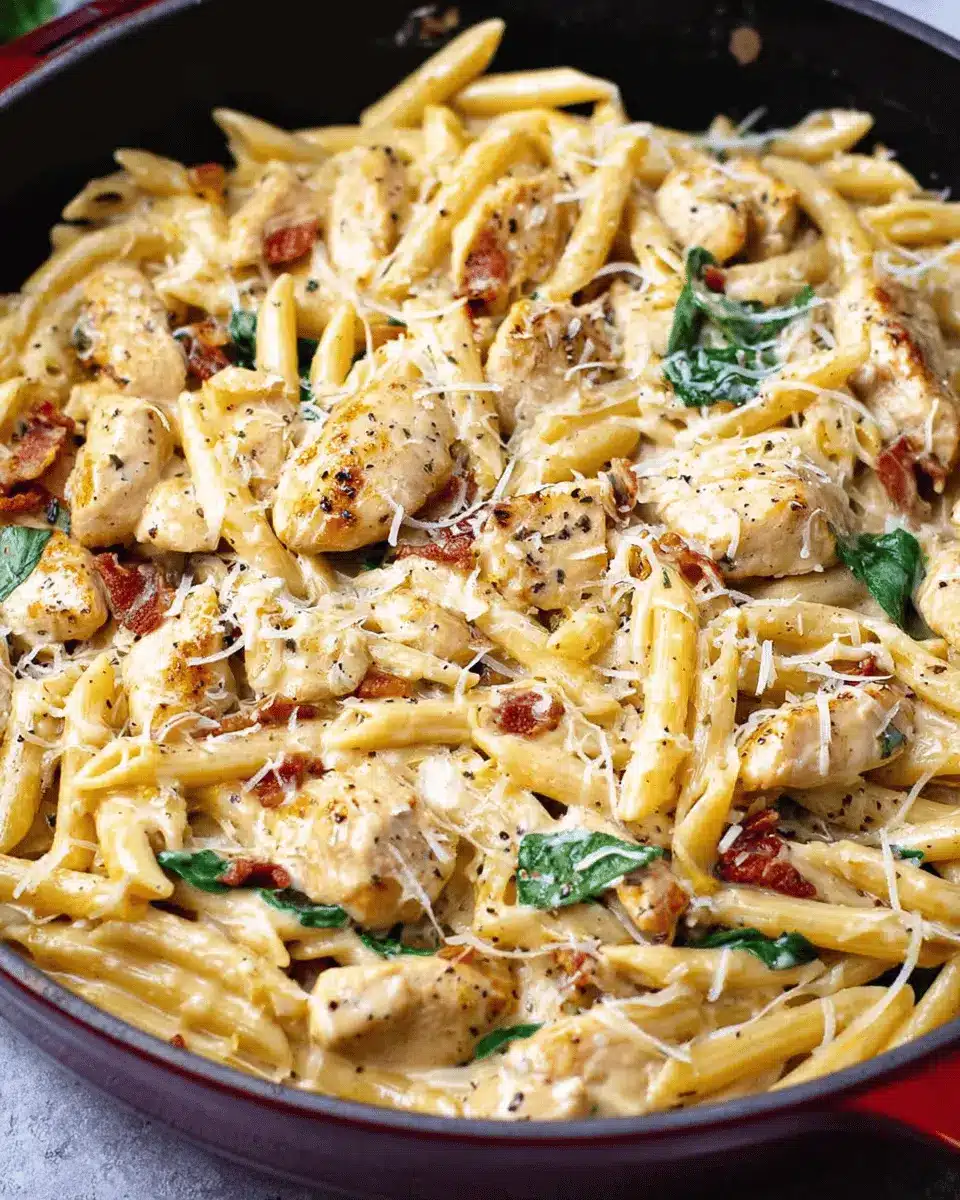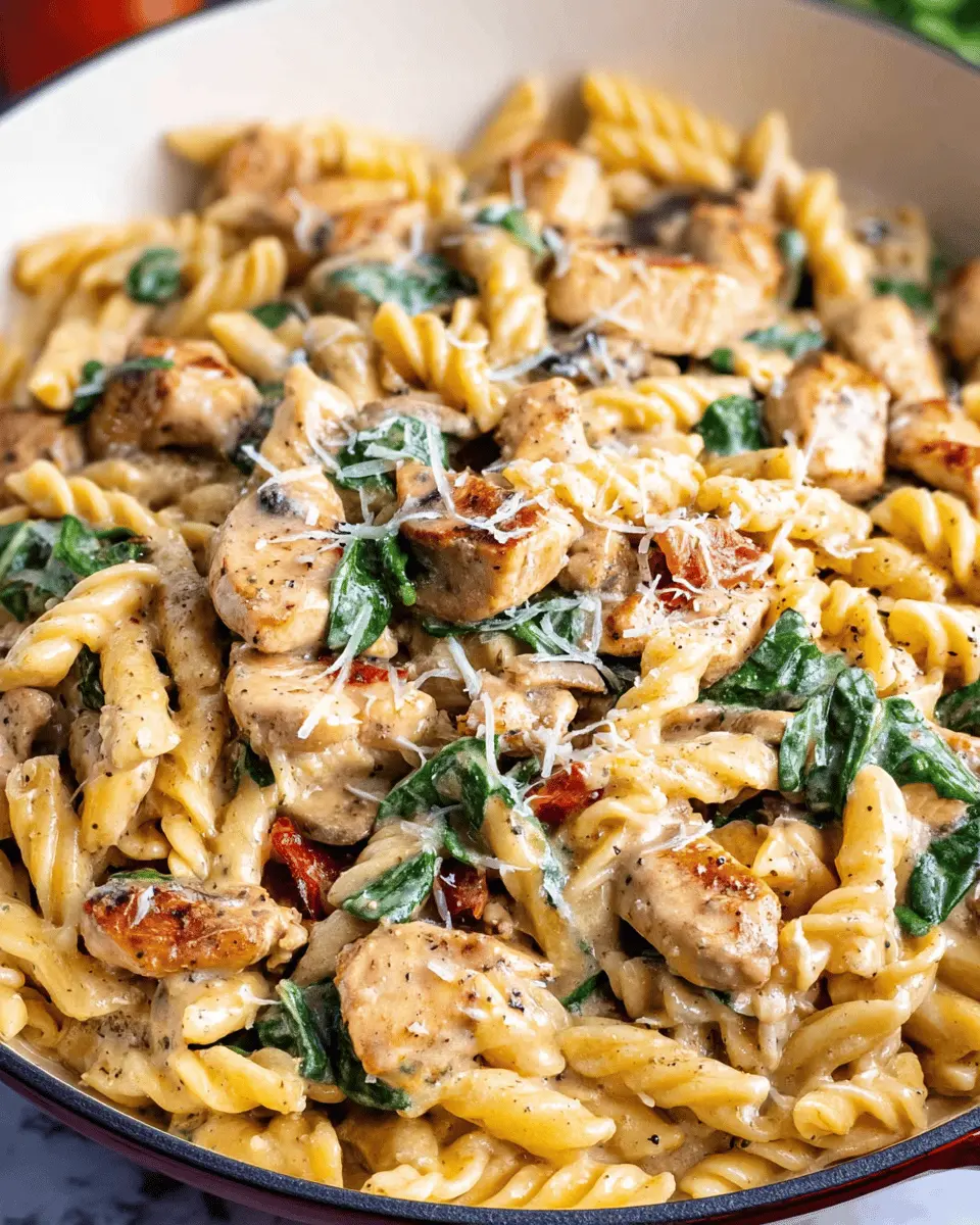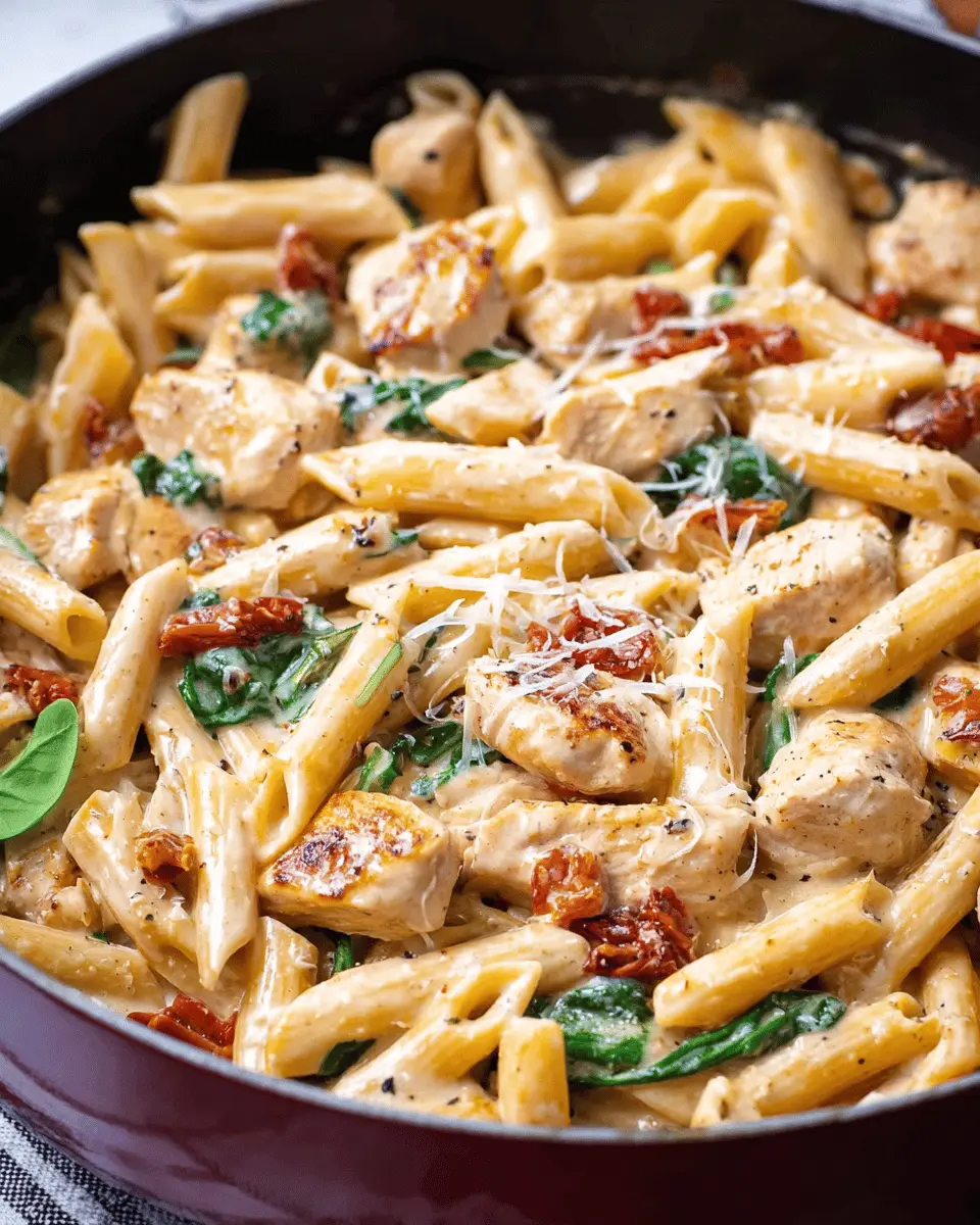In conclusion, Creamy Tuscan Chicken Pasta is an easy weeknight meal that brings a touch of Italy to your kitchen. With its rich flavors from sun-dried tomatoes and fresh spinach, this dish is not only satisfying but also adaptable for various diets. Perfect for sharing or enjoying solo, it’s sure to become a favorite!