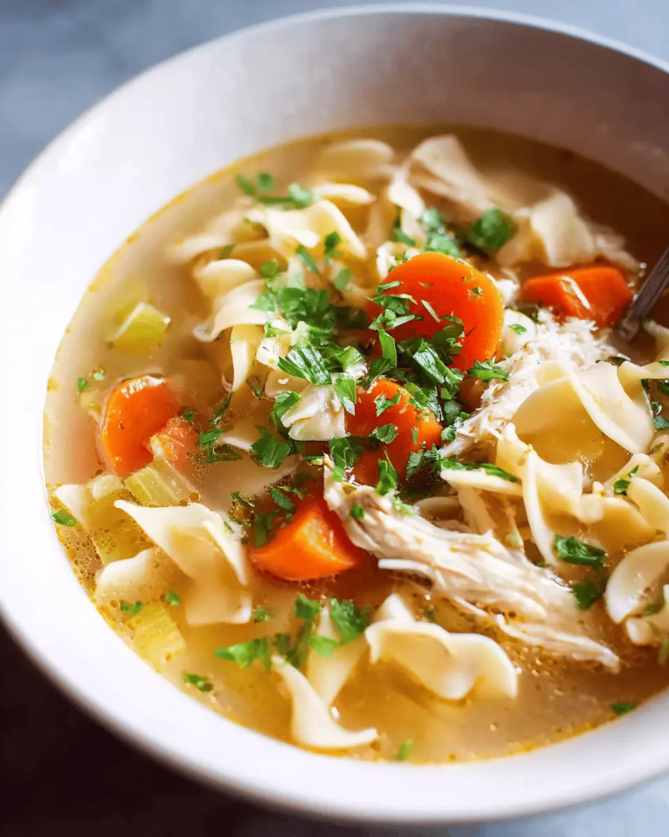 Elevate your easy chicken noodle soup with delicious toppings! Consider adding a few slices of fresh avocado for creaminess, a sprinkle of grated Parmesan for a salty bite, or some crumbled Turkey Bacon for a smoky twist. If you're feeling adventurous, a dash of hot sauce can bring a surprising kick! Fresh herbs like dill or thyme also add brightness, while a squeeze of lemon juice can enhance all the flavors beautifully.