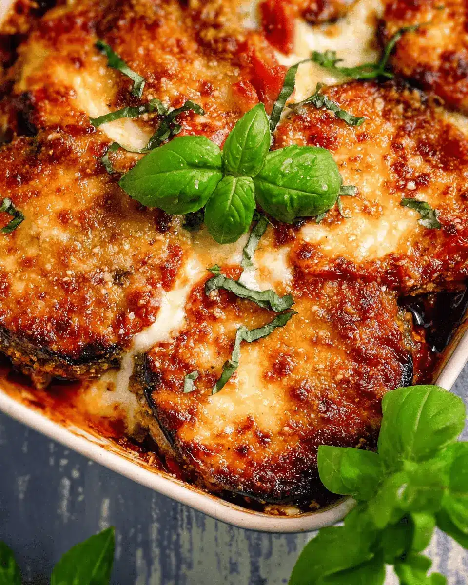 Impress your friends by serving your Easy Eggplant Parmesan in individual ramekins for a charming, elegant twist. Layer each ramekin with your eggplant goodness, topping it with freshly chopped basil and a spritz of balsamic glaze before baking. Alternatively, place your baked dish on a wooden cutting board for a rustic presentation. Pair it with colorful sides and a well-arranged salad to make the table visually inviting. Your guests will love eating with their eyes before they even take a bite!