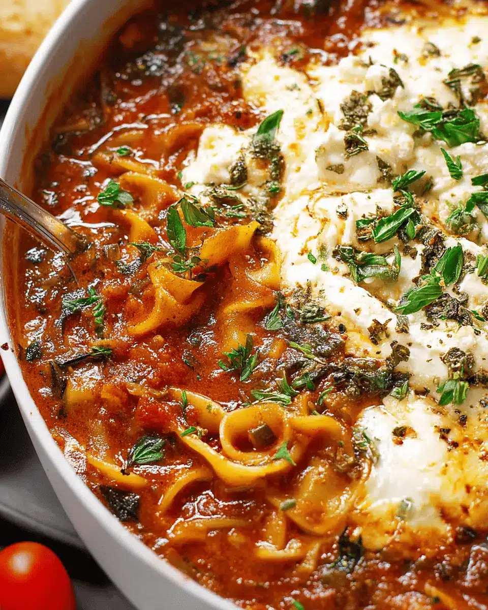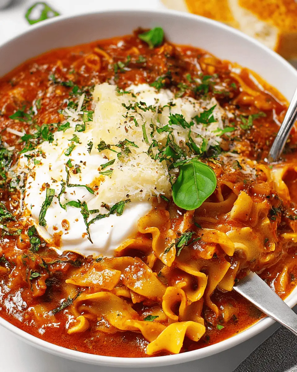 Put the finishing touches on your bowl by experimenting with toppings. A sprinkle of fresh basil or oregano can brighten up the dish, while a few finely chopped sun-dried tomatoes add a delightful umami punch. If you love heat, drizzle some chili oil over your soup for a spicy kick. Don't forget a generous dollop of creamy ricotta for that classic lasagna experience!