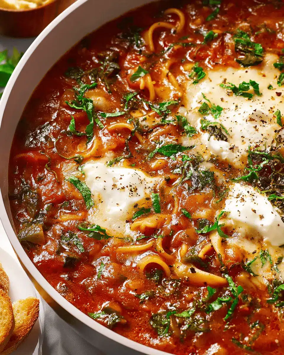 To elevate your easy vegetarian one pot lasagna soup, consider pairing it with a crunchy side salad or some warm garlic bread. A simple mix of arugula, cherry tomatoes, and a zesty vinaigrette adds freshness and balances the rich flavors of the soup. For a cozy touch, serve it alongside a slice of homemade focaccia or cheesy breadsticks for dipping.