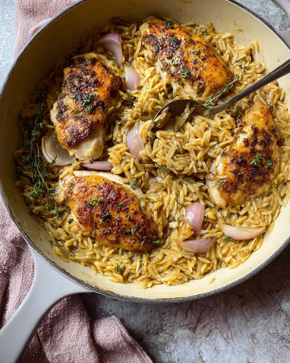 Let’s talk about French Onion Chicken and Orzo. This dish brings the warmth and comfort of your favorite soup into a satisfying entrée, making it perfect for weeknight dinners. It’s all about merging rich flavors with the heartiness of orzo and tender chicken, creating a wholesome meal that’s both easy to prepare and enjoyable to share. Plus, cleanup is a breeze since it’s made in just one pan!