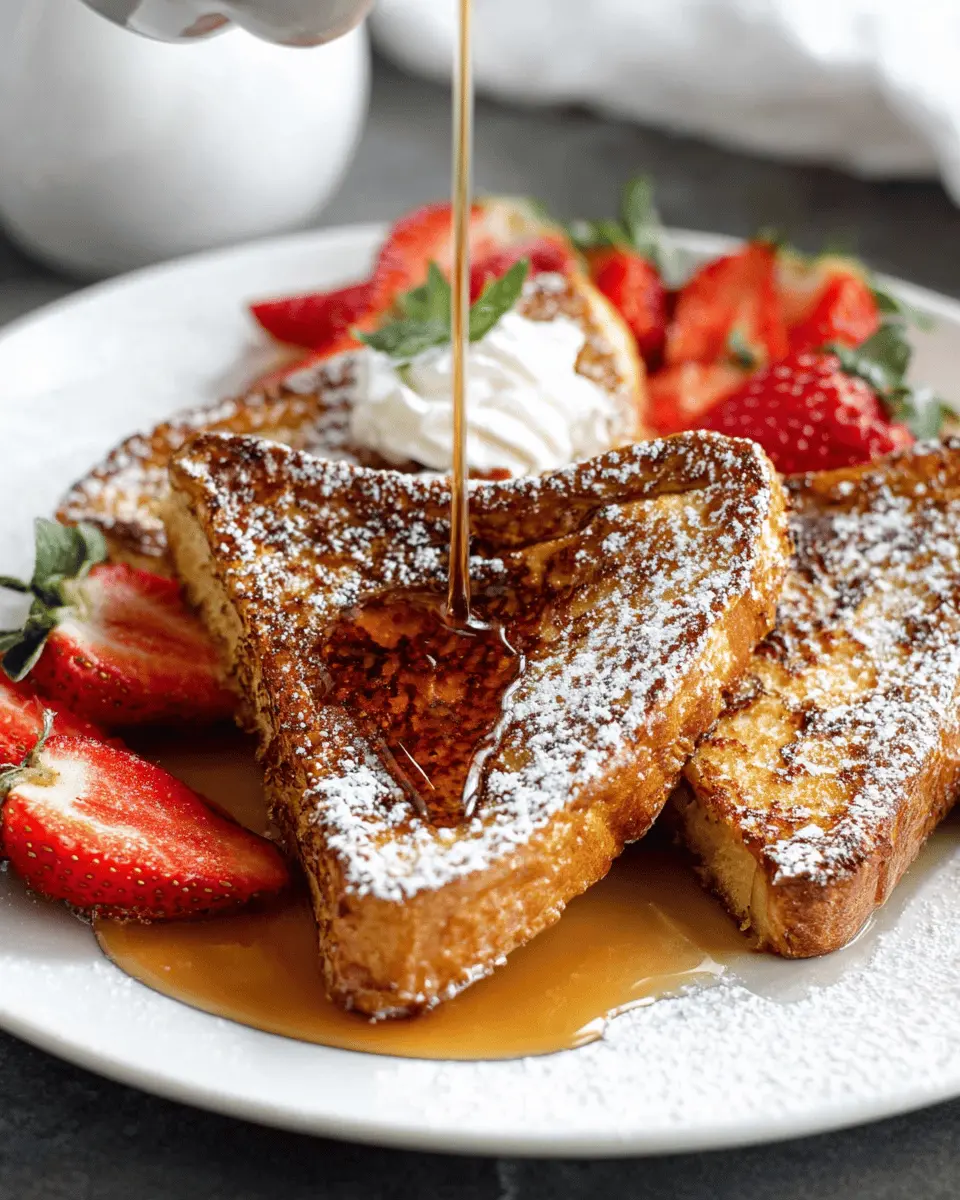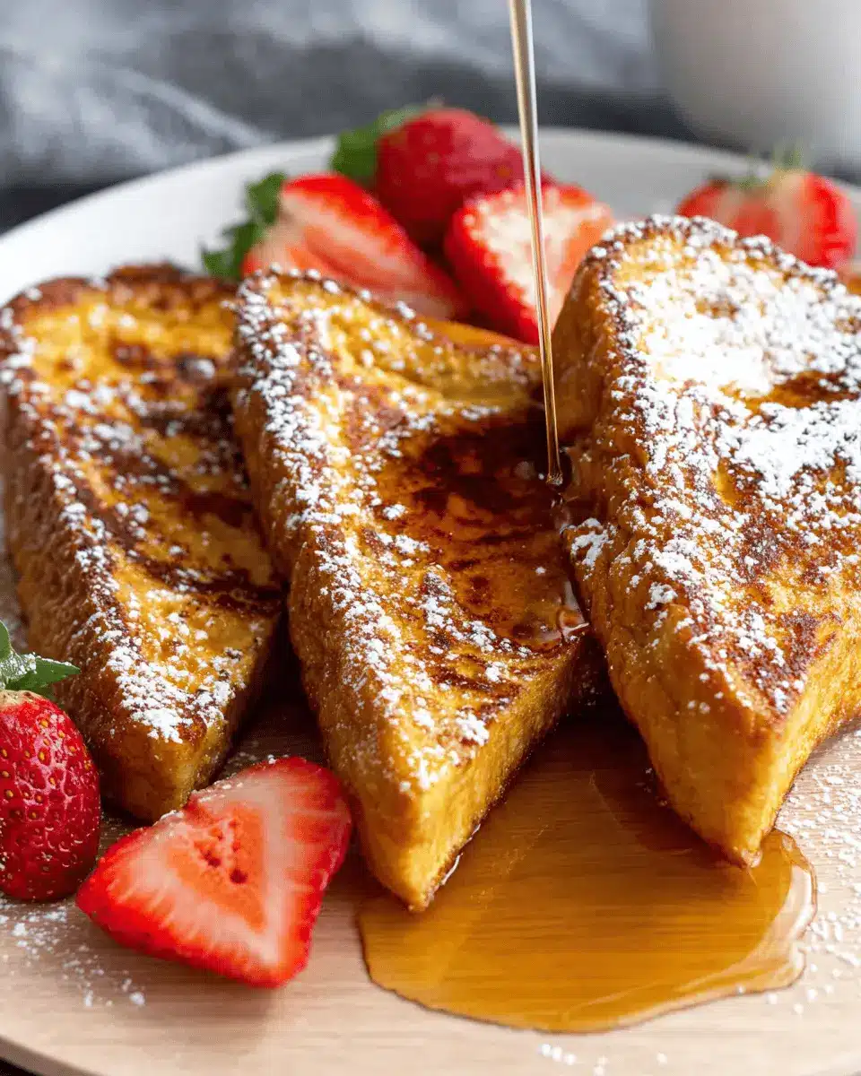 For a truly classic French toast experience, drizzle warm maple syrup generously over your golden slices. The richness of the syrup pairs beautifully with the sweet, custardy center. For an elegant touch, a light dusting of powdered sugar adds both sweetness and a lovely presentation. This combo is simple yet indulgent, a timeless breakfast pleasure!
