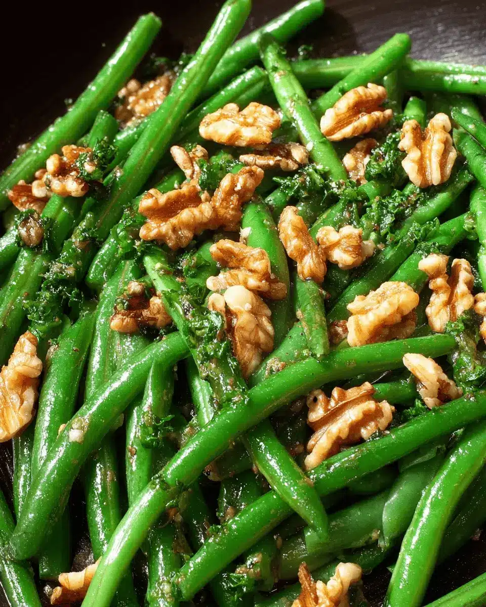 Beyond its health benefits, green beans with walnuts is a visually stunning dish that can brighten up any dinner table. Tossed in a light coating of walnut oil and garnished with bright parsley, it’s sure to get your guests talking. So why not give it a try? This dish is not just a side; it’s a conversation starter!