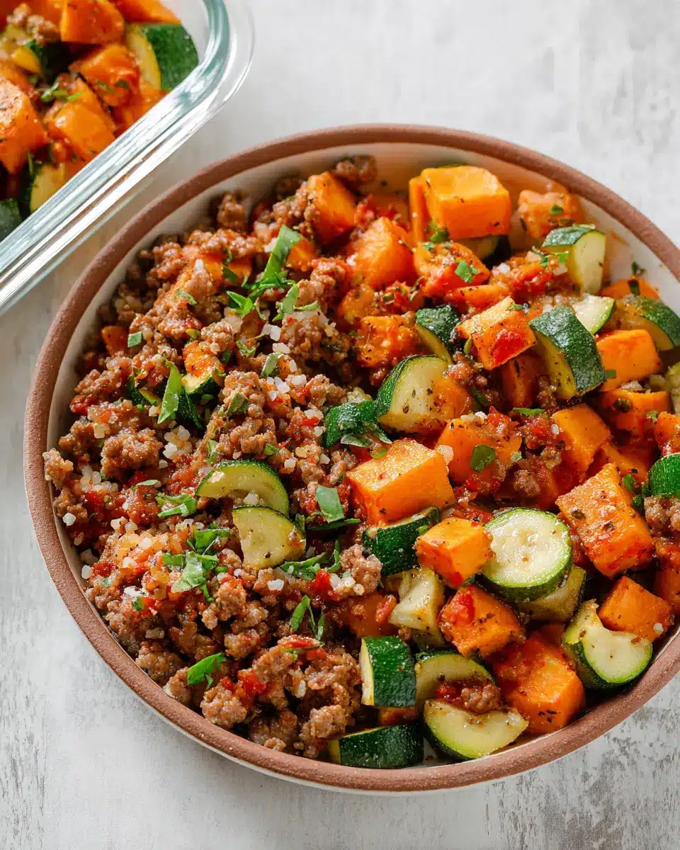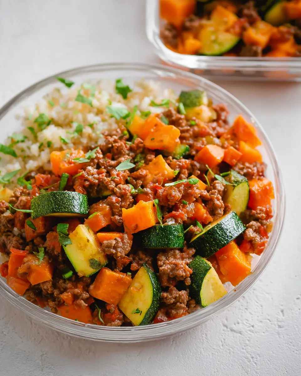 Ground Beef Zucchini Sweet Potato Skillet (Meal Prep)