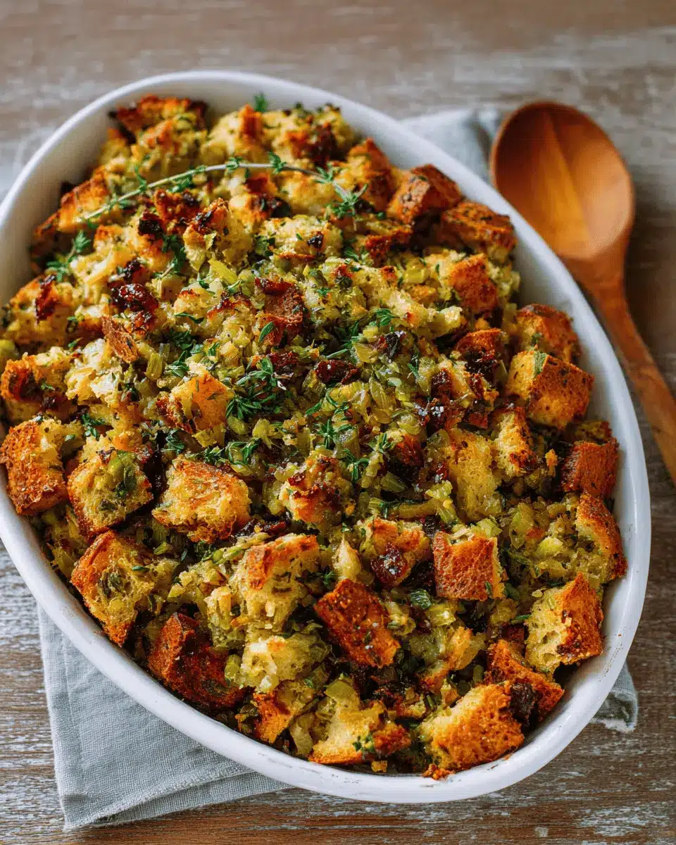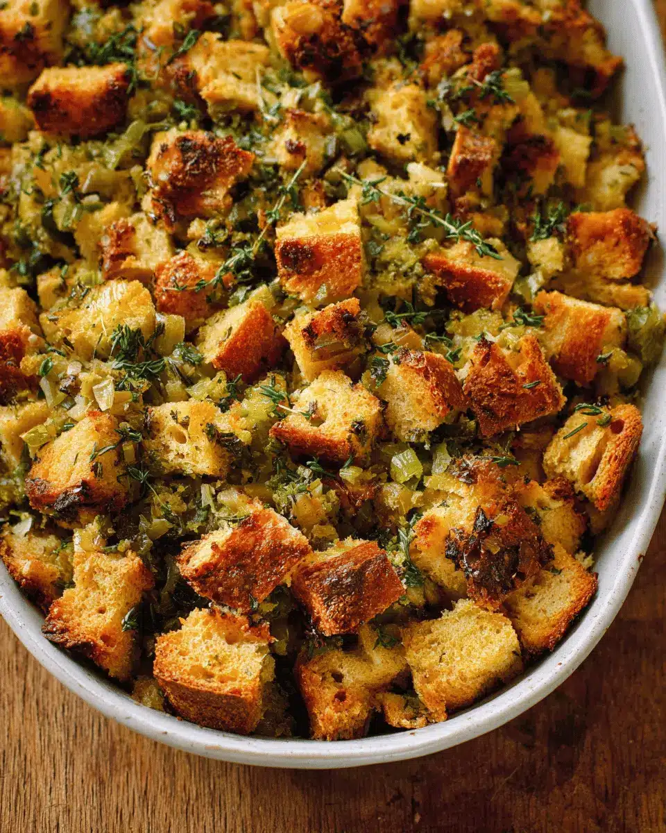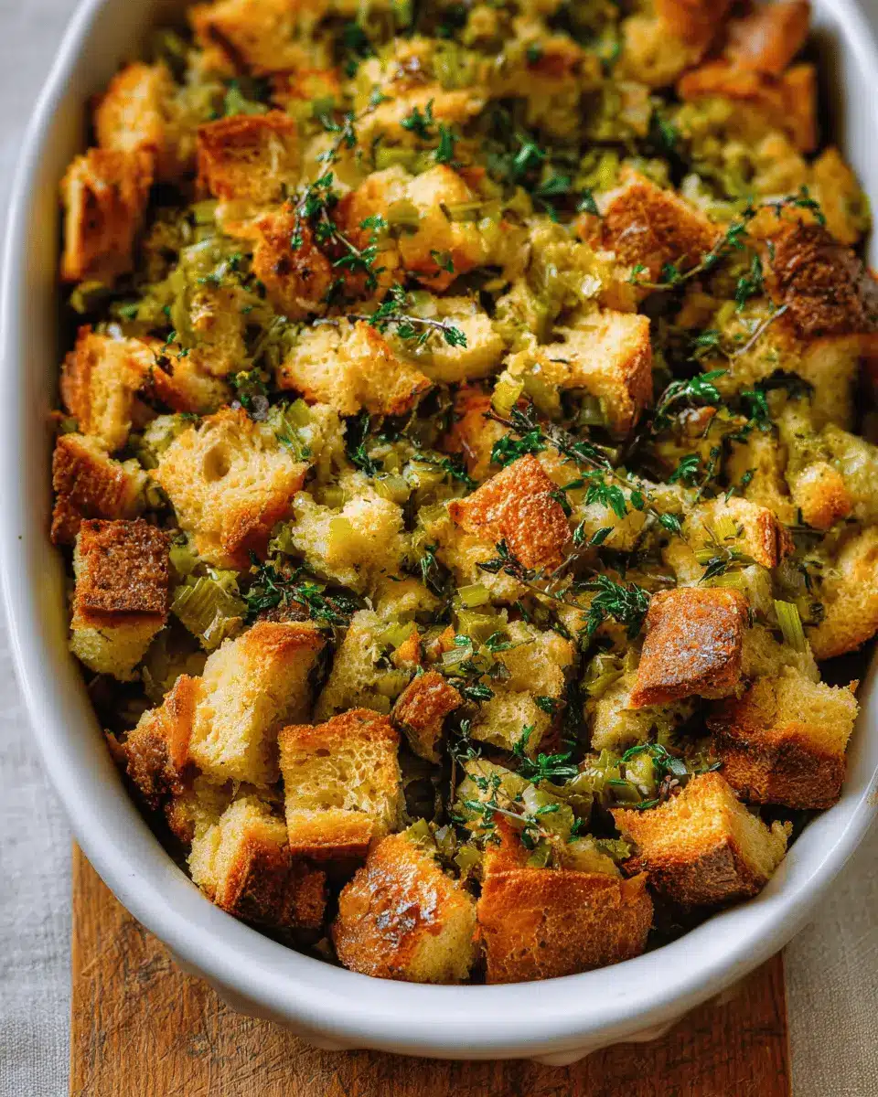As a Side Dish: Pair the savory herb stuffing with roasted chicken or turkey for a comforting meal. The flavors complement each other beautifully!