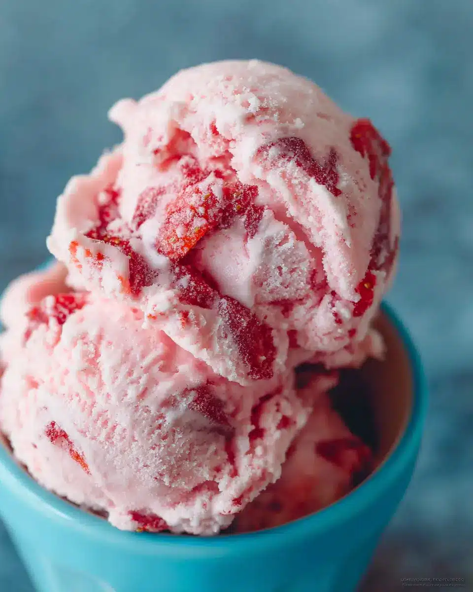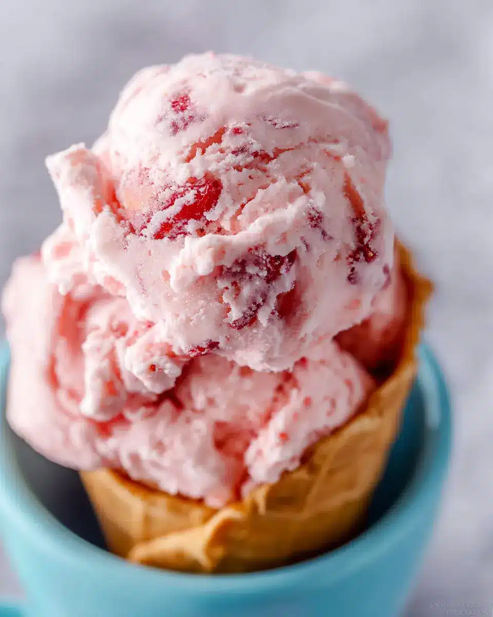 Yes! If you don’t have an ice cream maker, you can still enjoy this treat. Just pour the strawberry mixture into a shallow dish and freeze it. Stir every 30 minutes for the first few hours to break up any ice crystals. It might take a bit longer to achieve that perfect consistency, but it’ll definitely be worth the effort!