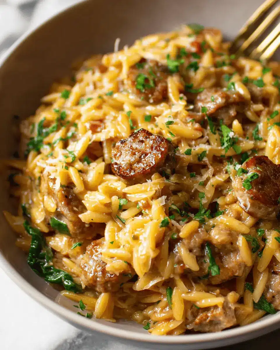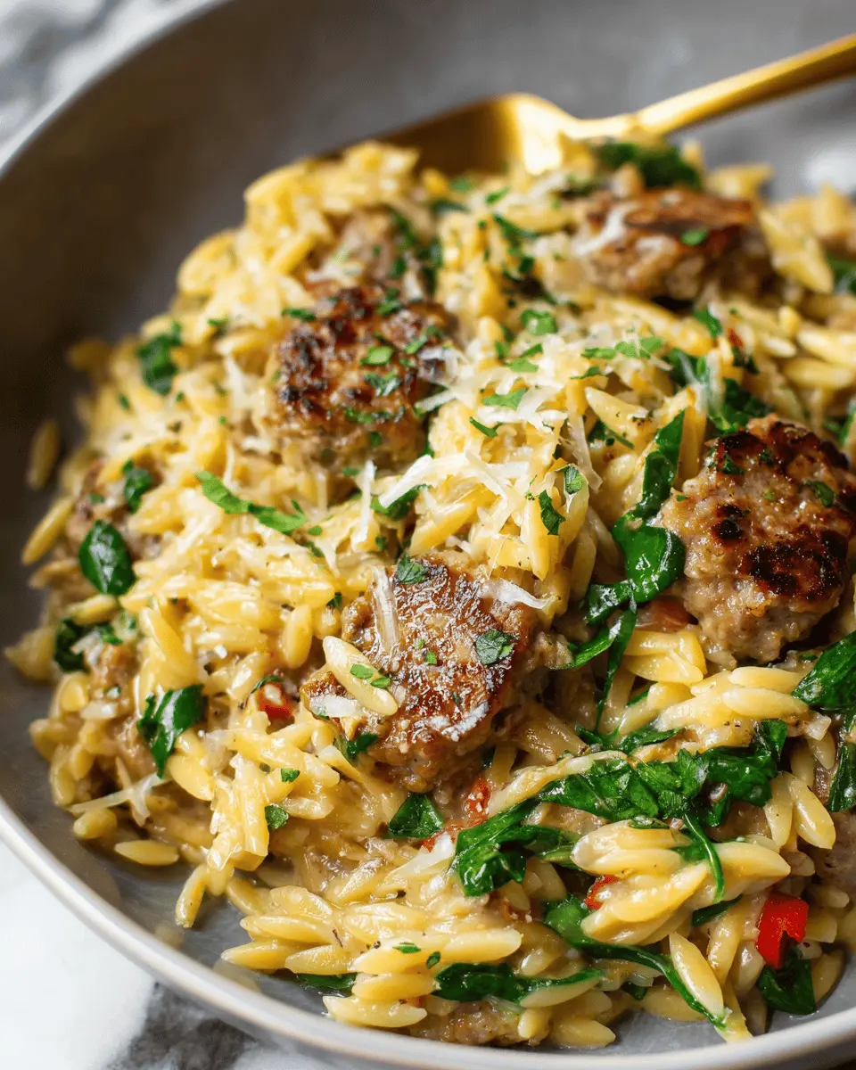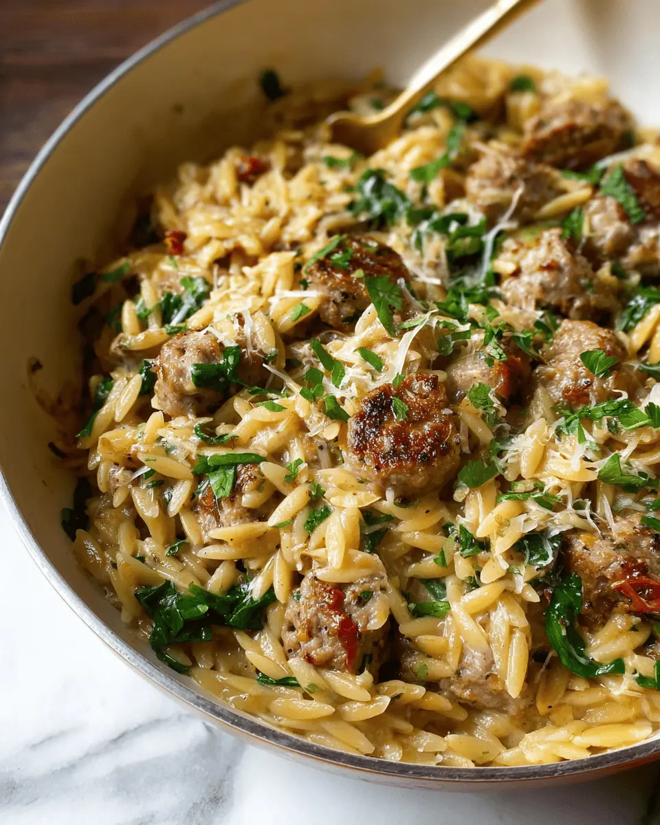 For those who crave a little heat, introducing spicy Italian sausage is the way to go. Simply replace the mild sausage with a spicier variety or enhance it with extra crushed red pepper flakes. This variation adds a delightful kick that elevates the entire dish. Pair it with some sautéed arugula or serve with a side of crusty bread to balance the spice. If you're feeling adventurous, try topping your orzo with sliced jalapeños for an extra zing!