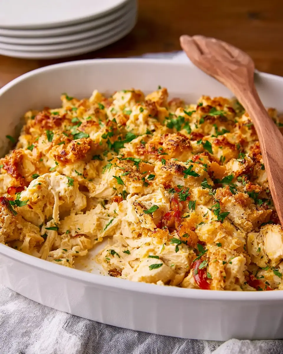 And that’s it! You’ve just created a delicious Million Dollar Chicken Casserole. Feel free to garnish with some sliced scallions if you fancy a pop of color. Serve it alongside a simple salad, and you’ve got yourself a meal that’s as comforting as it is impressive. Enjoy!