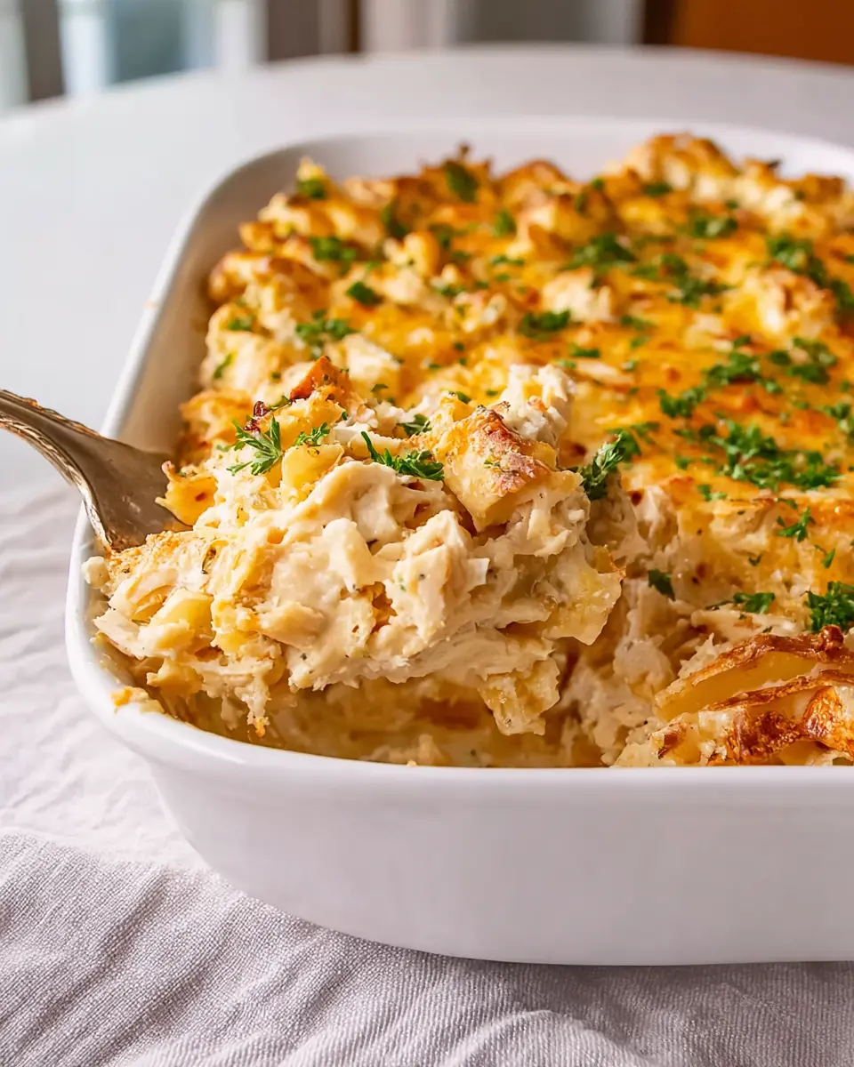 Are you curious about how this creamy casserole came to be? Check out some of our favorite chicken casserole variations for even more tasty ideas!