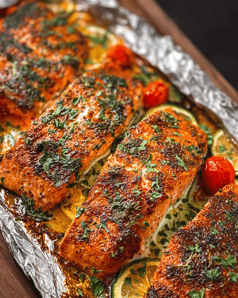 Start by preheating your oven to 375°F. This temperature ensures that your salmon cooks evenly. Next, line a large rimmed baking sheet with aluminum foil. This bit is not just for easy cleanup, but it also helps capture the flavors. Place your salmon fillet on top of the foil, skin side down, with the pink side facing up. Crimp the edges of the foil to create a little “boat” around the salmon, which will help retain moisture while baking.