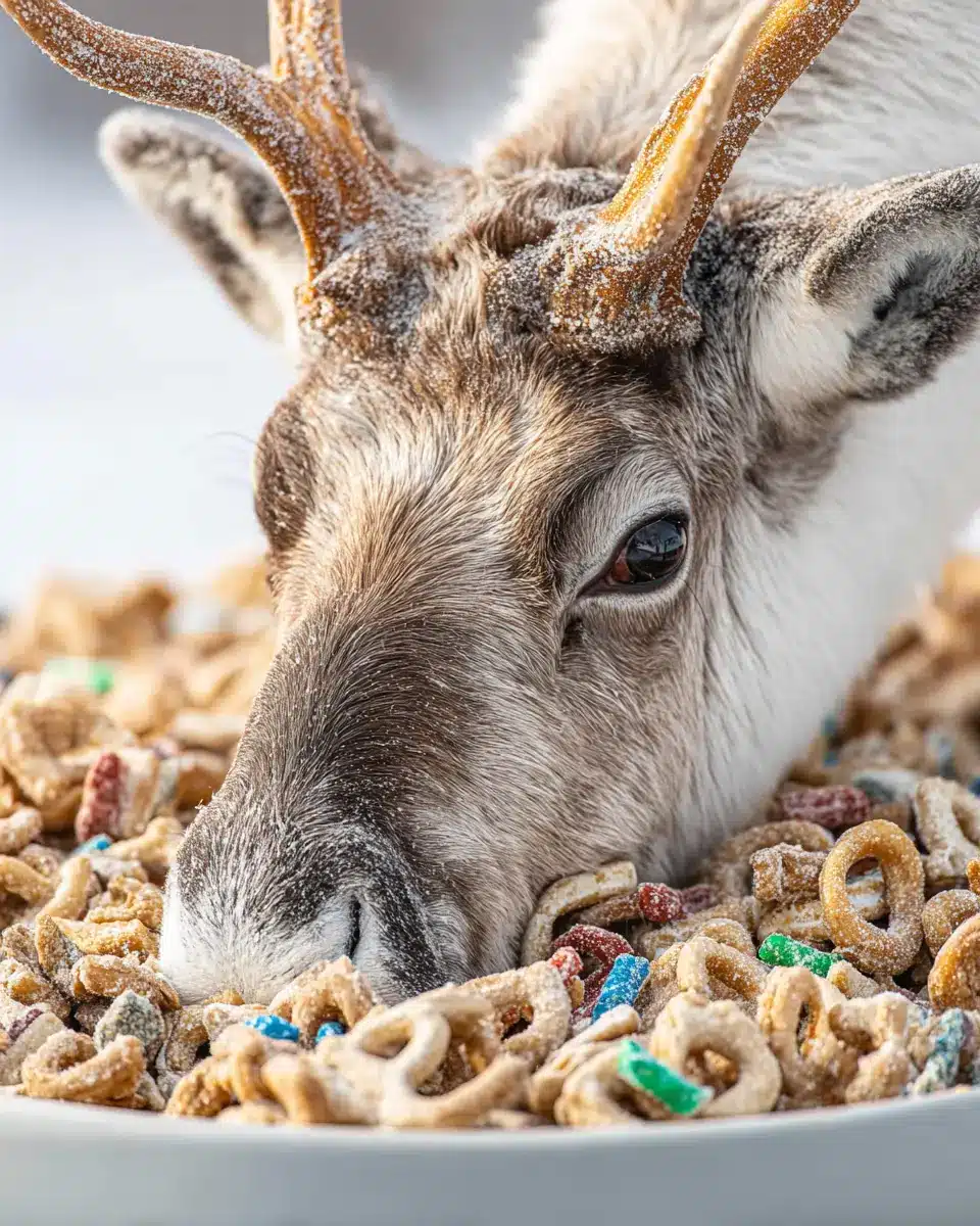 You can serve your delightful reindeer food in clear cellophane bags tied with cheerful ribbons or in festive bowls at a holiday gathering. It also makes a fantastic gift for friends and family. Just remember, this is a snack you’ll want to share to spread the holiday cheer!