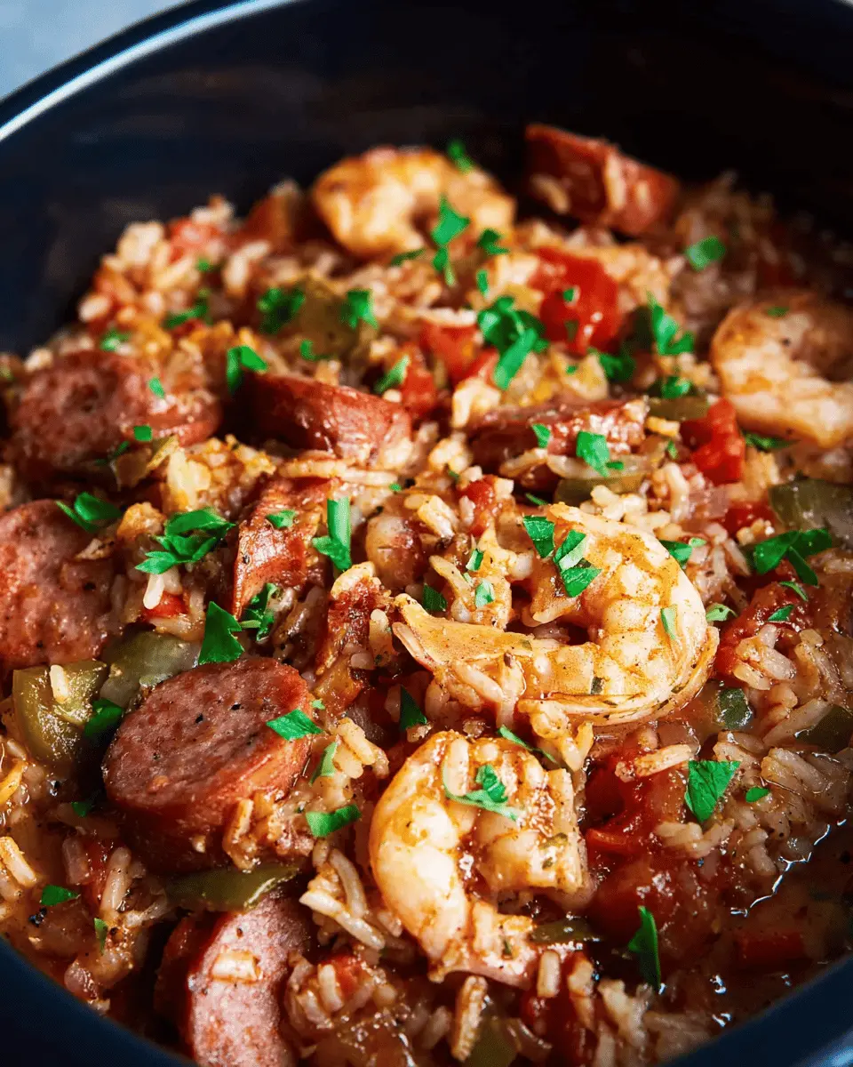 Slow cookers allow you to set it and forget it. A mere 20 minutes of prep in the morning can yield a hearty dinner for eight by the evening! This makes it not just convenient but also cost-effective; you can easily batch-cook for meal prep, saving time and money during the week. The combined flavors of smoked sausage, succulent shrimp, and tender chicken partnered with seasoned rice create a comforting and satisfying dish that feels indulgent without all the hassle.