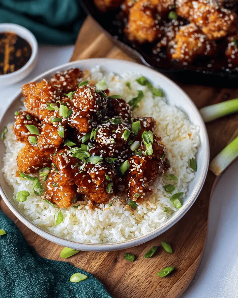Elevate your sticky sesame chicken with a sprinkle of green onions and sesame seeds for a pop of flavor and a beautiful presentation. Consider adding a squeeze of fresh lime to brighten the dish. You could also serve it alongside a simple cucumber salad for a refreshing crunch. These little touches make a big difference in taste and presentation—your guests will be impressed!