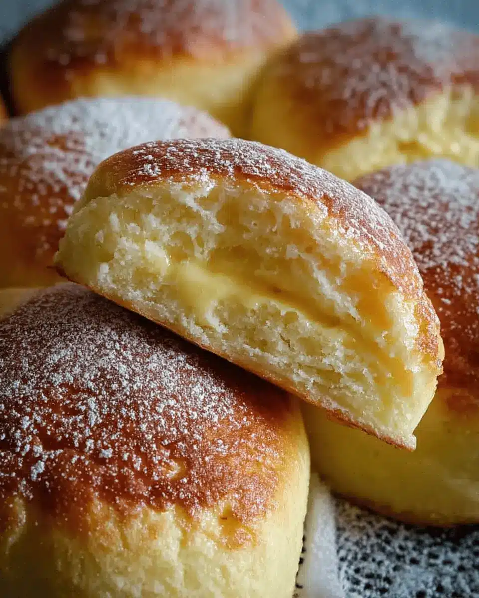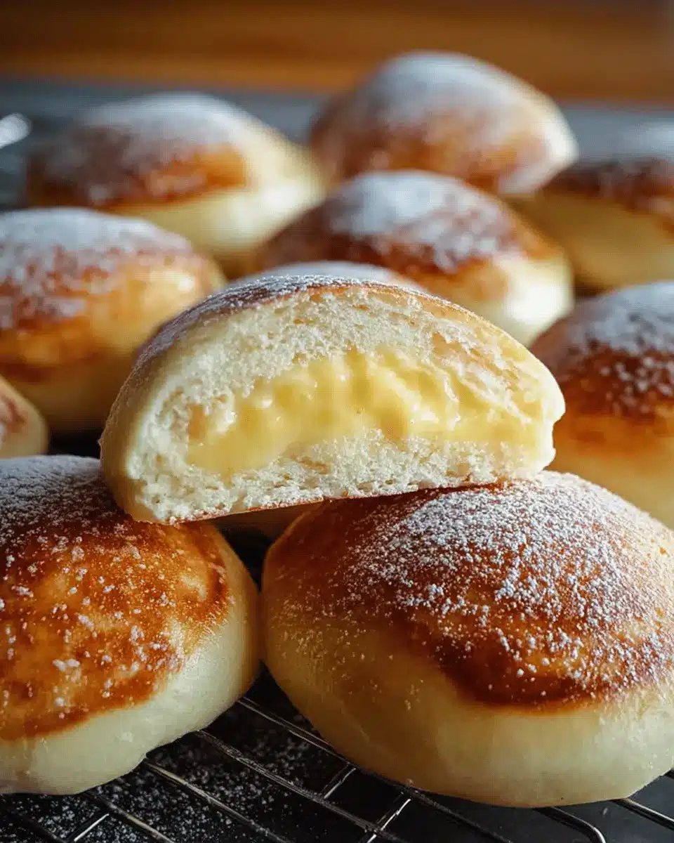 Once cooked, remove the buns from the pan and let them cool for a few minutes. This is the moment to dust them with powdered sugar if desired. And just like that, you’ve created a batch of warm, inviting stovetop custard cream buns ready to be enjoyed!