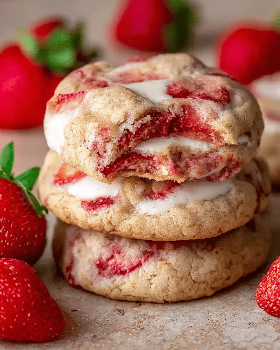 Why not take your strawberry cheesecake cookies to the next level by turning them into delightful cookie sandwiches? Simply add a layer of that creamy vanilla cheesecake filling between two cookies for a rich treat that’s perfect for sharing (or not!). You can even enhance the experience by rolling the edges in crushed graham crackers, mimicking a classic cheesecake crust. These sandwiches bring both nostalgia and flavor to your dessert table, making them an excellent choice for gatherings or cozy nights in.
