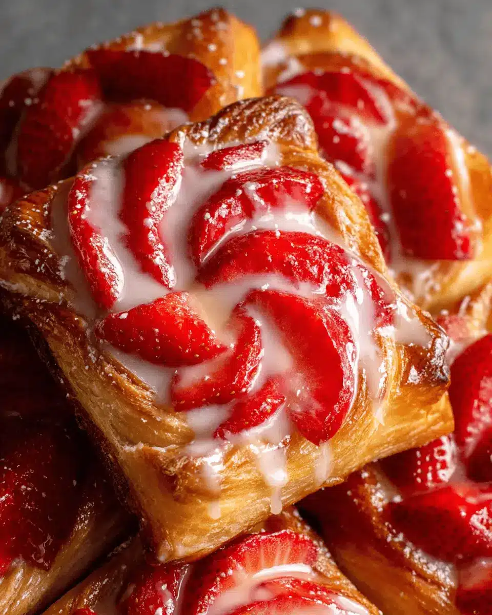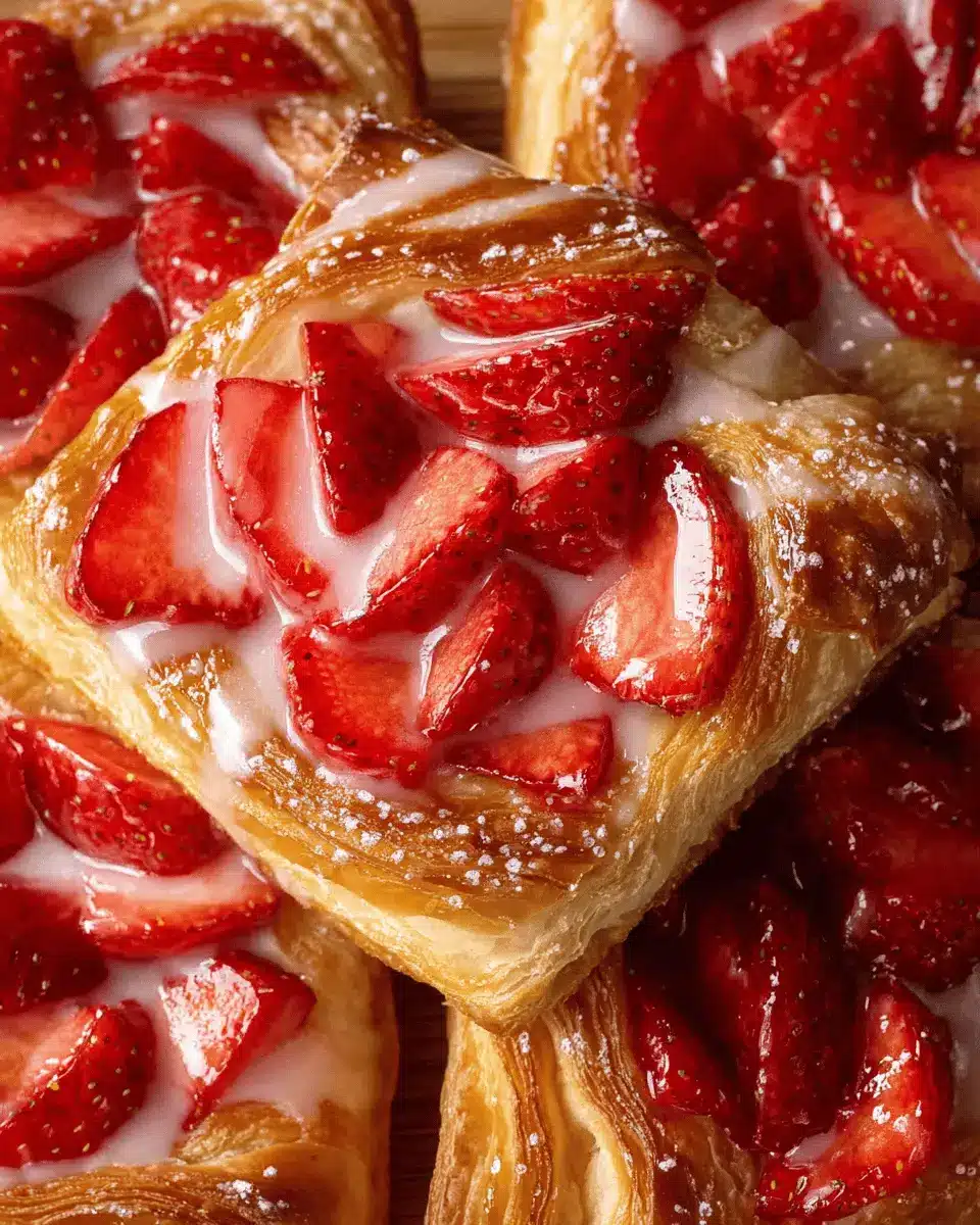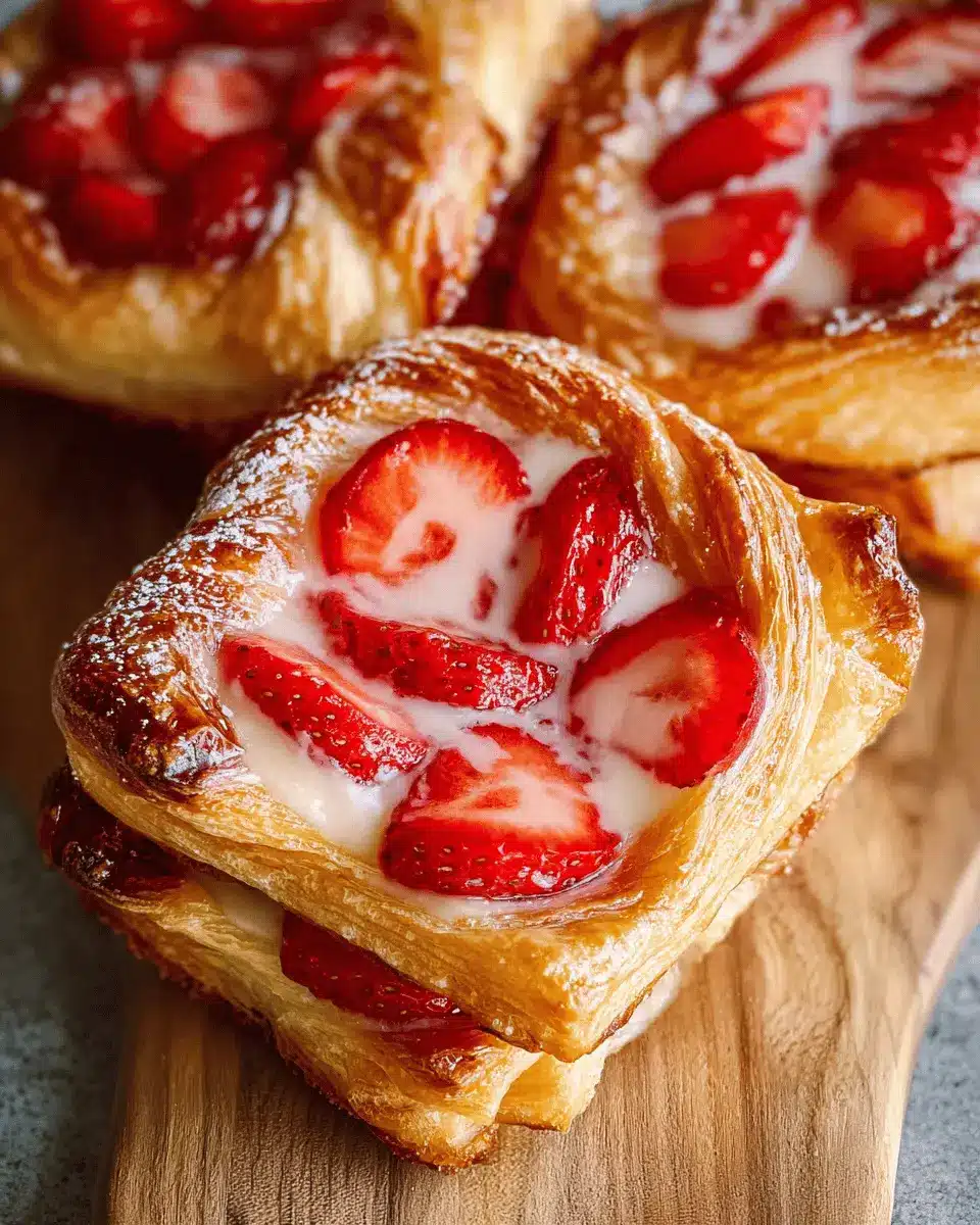 Looking for a lighter twist on Strawberry Danish? You can easily omit the cream cheese filling for a fruity alternative. Simply layer the fresh strawberries directly on the puff pastry, mixing them with a bit of sugar and lemon juice for an added zing. This version is not only light but also allows the bright flavor of the strawberries to shine through! For an even more refreshing taste, consider adding a sprinkle of fresh mint before baking.
