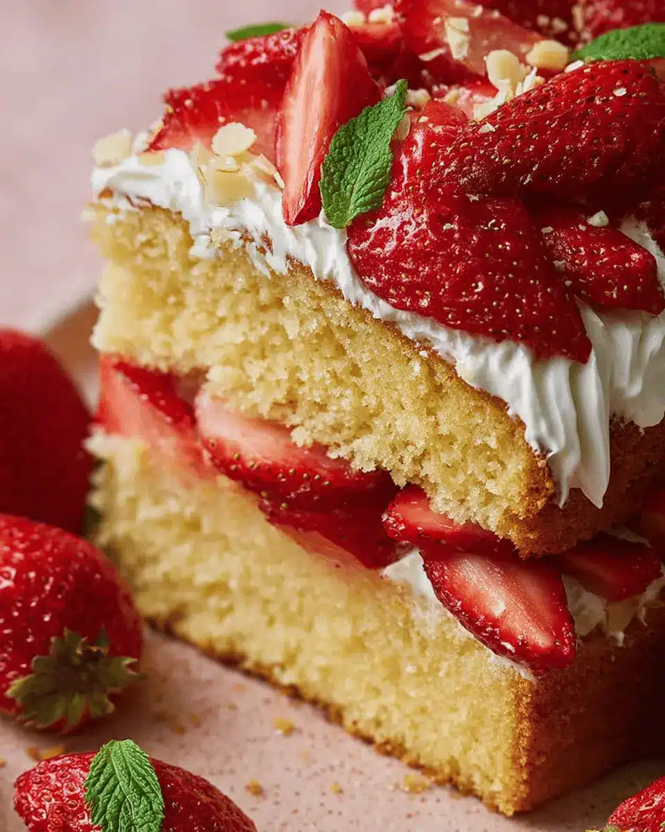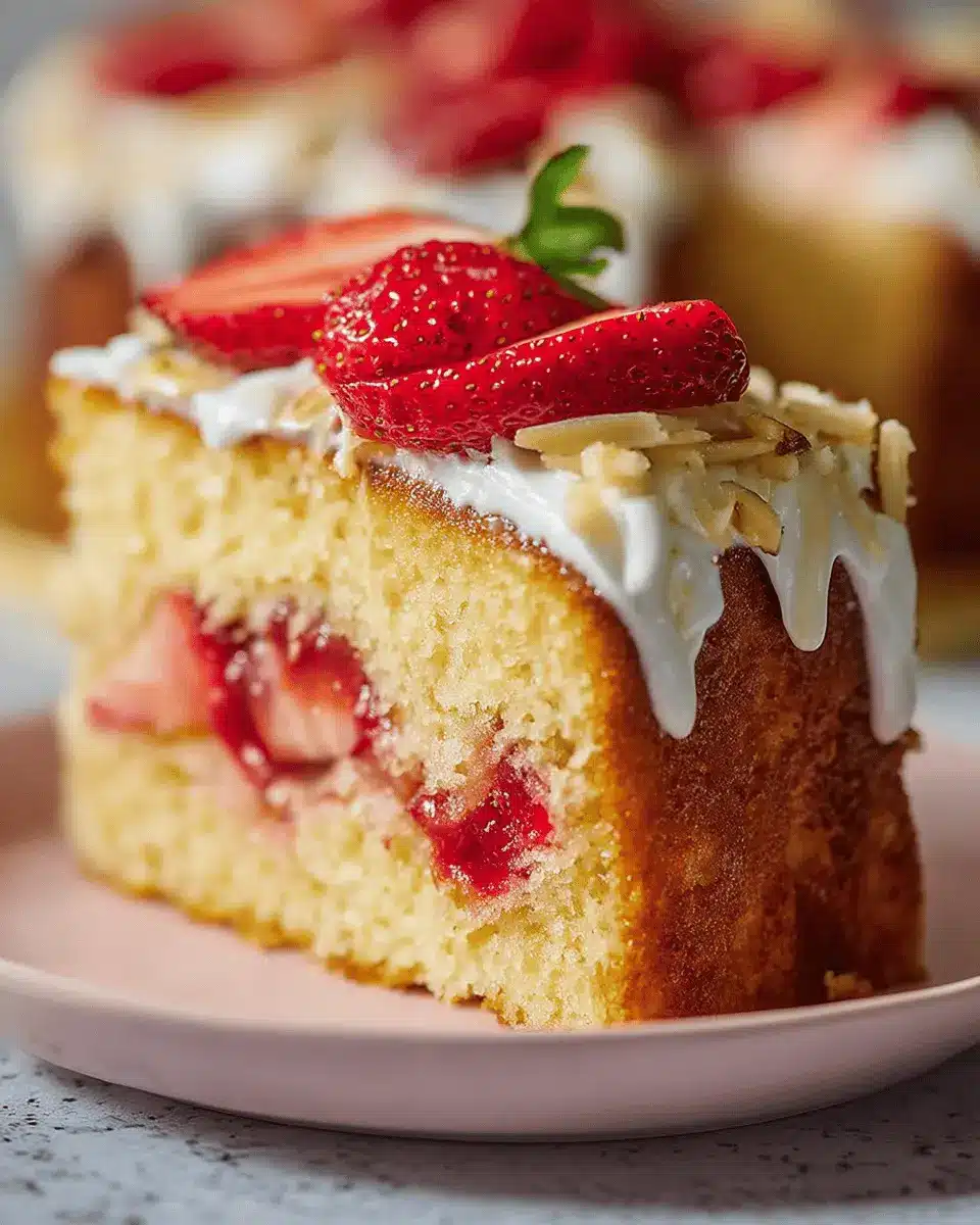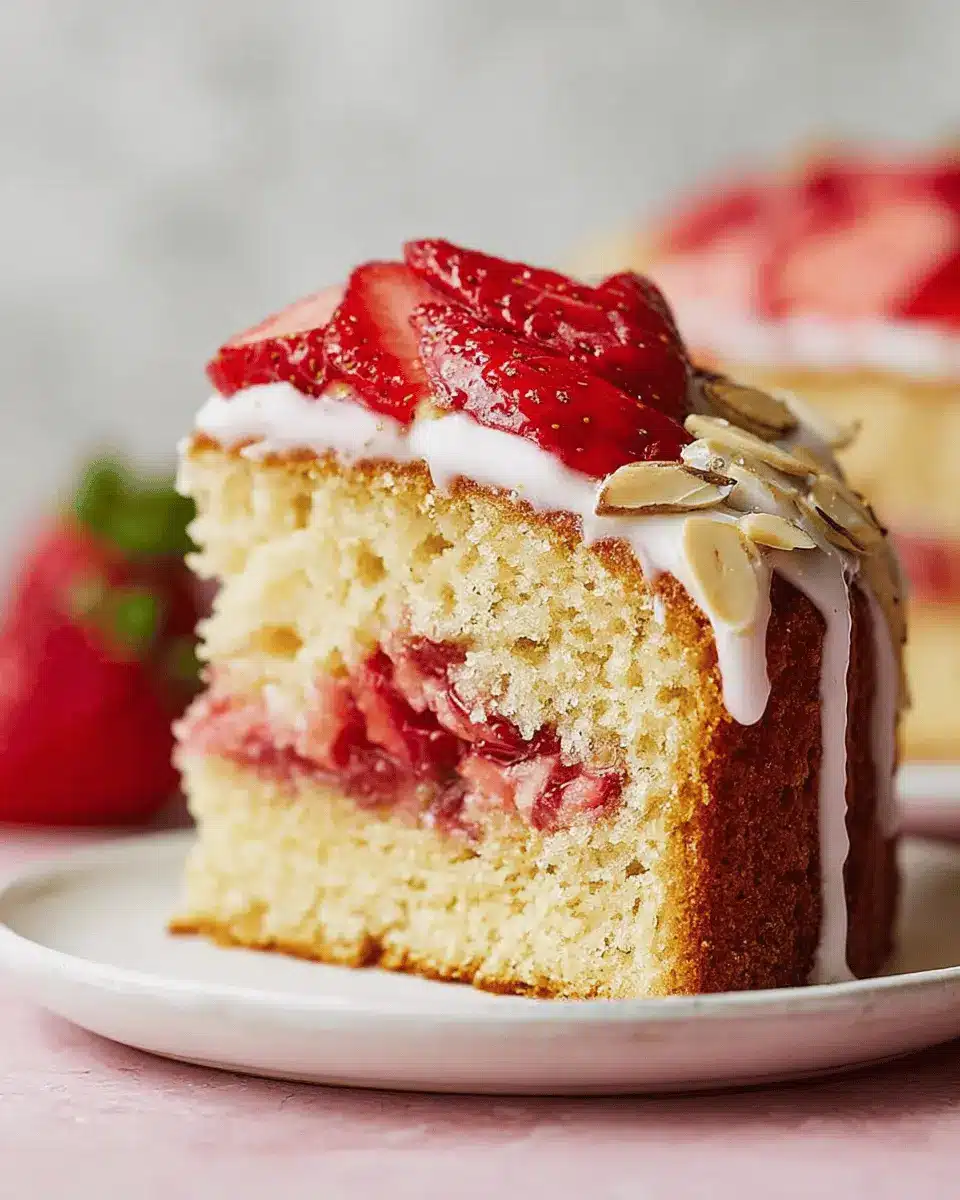 Additionally, the almond extract in the batter elevates the flavor profile, giving you a subtle nutty aroma that pairs beautifully with the strawberries. For an impressive and satisfying dessert, you can find a full recipe for this scrumptious cake with instructions detailing how to achieve the perfect balance of flavors and textures.