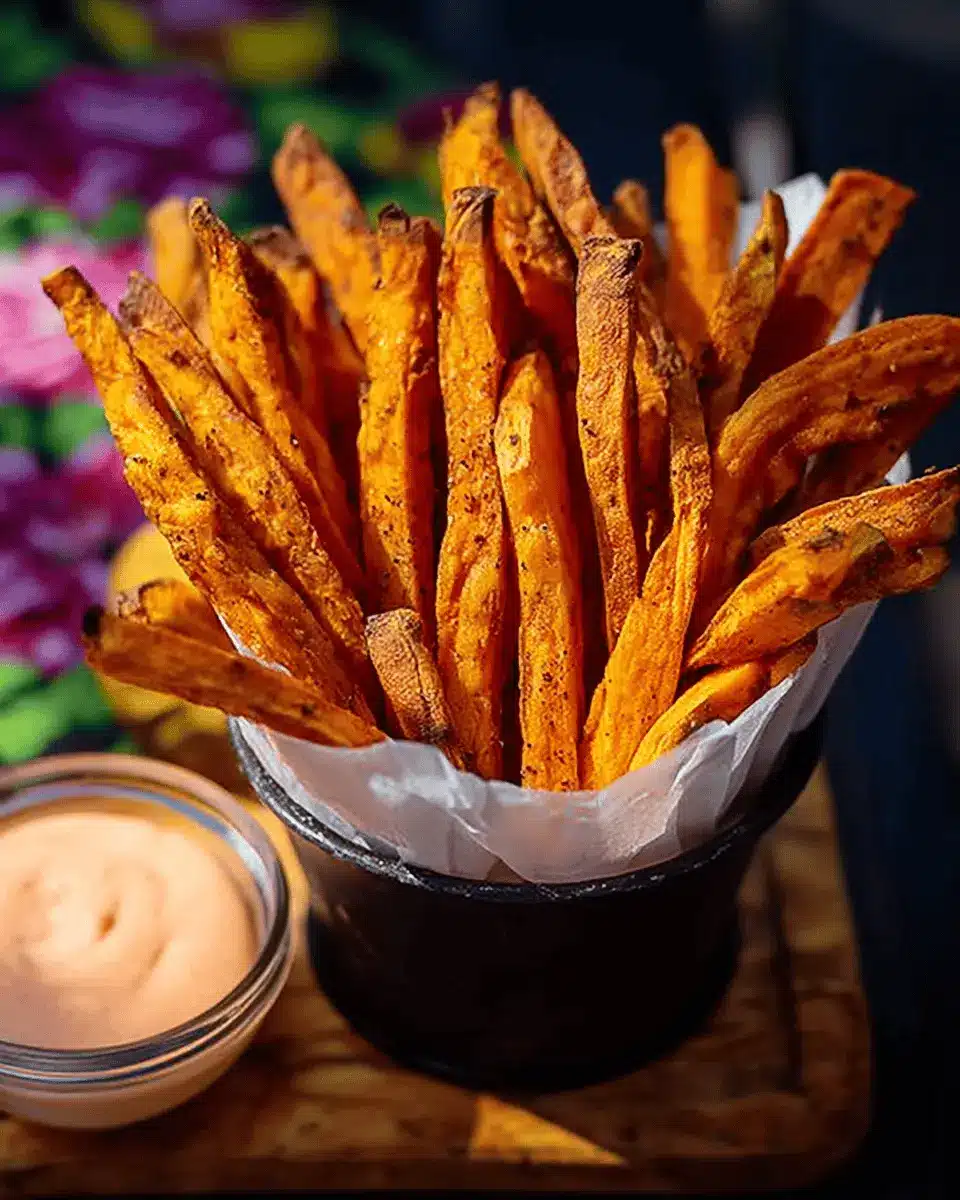 Dip It Like You Mean It: Serve your sweet potato fries with a zesty dip. Try a garlic aioli, spicy chipotle mayo, or a refreshing yogurt sauce. These can add a whole new dimension to your fries.