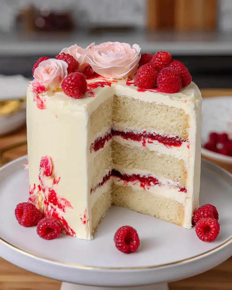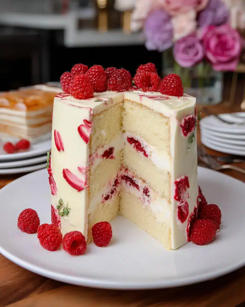 Stunning Presentation: The vibrant colors of raspberries against the lush white frosting create a visually appealing cake. It’s a perfect centerpiece for any gathering.